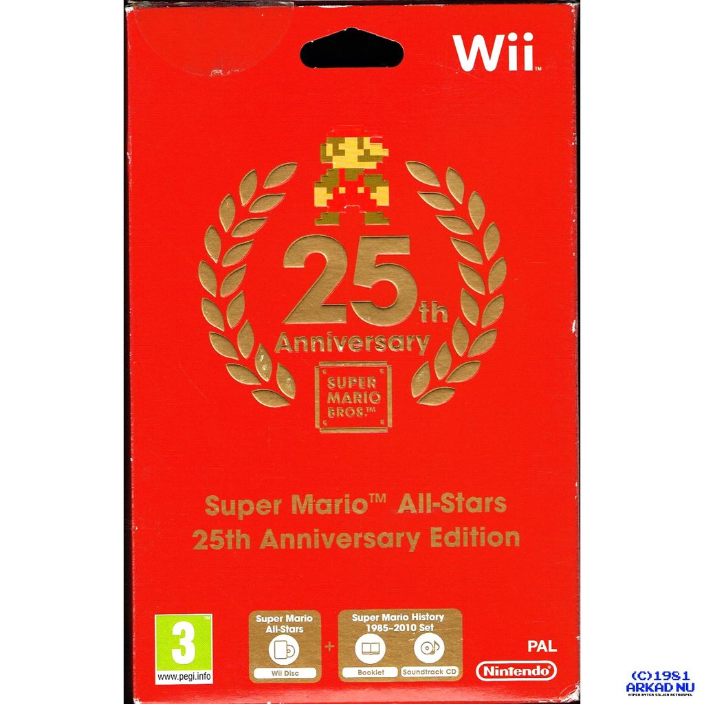 In 2010, Super Mario All-Stars was ported to the Wii and released as Super Mario All-Stars 25th Anniversary Edition to celebrate the 25th anniversary of the release of Super Mario Bros. It was released in Japan on October 21, 2010 and in all other regions in December 2010 on Wii optical disc. The game disc contains an emulation of the original SNES ROM image, with support for the Wii Remote, Classic Controller, and GameCube controllers. A 32-page booklet detailing the history of the Super Mario franchise and an audio CD containing music from each Super Mario game are bundled with the game disc