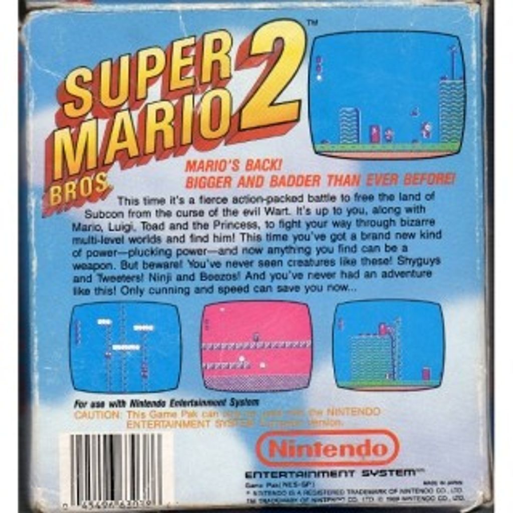 Super Mario Bros. 2 är ett plattformsspel till NES. Amerikanska och europeiska Super Mario Bros. 2 är ett helt annat spel än japanska Super Mario Bros. 2, vilket var ganska likt Super Mario Bros.. Detta nådde inte den svenska marknaden förrän spelsamlingen Super Mario All-Stars släpptes till Super Nintendo, då under namnet Super Mario Bros.: The Lost Levels.