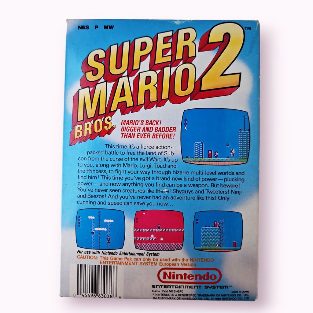 Super Mario Bros. 2 är ett plattformsspel till NES. Amerikanska och europeiska Super Mario Bros. 2 är ett helt annat spel än japanska Super Mario Bros. 2, vilket var ganska likt Super Mario Bros.. Detta nådde inte den svenska marknaden förrän spelsamlingen Super Mario All-Stars släpptes till Super Nintendo, då under namnet Super Mario Bros.: The Lost Levels.
