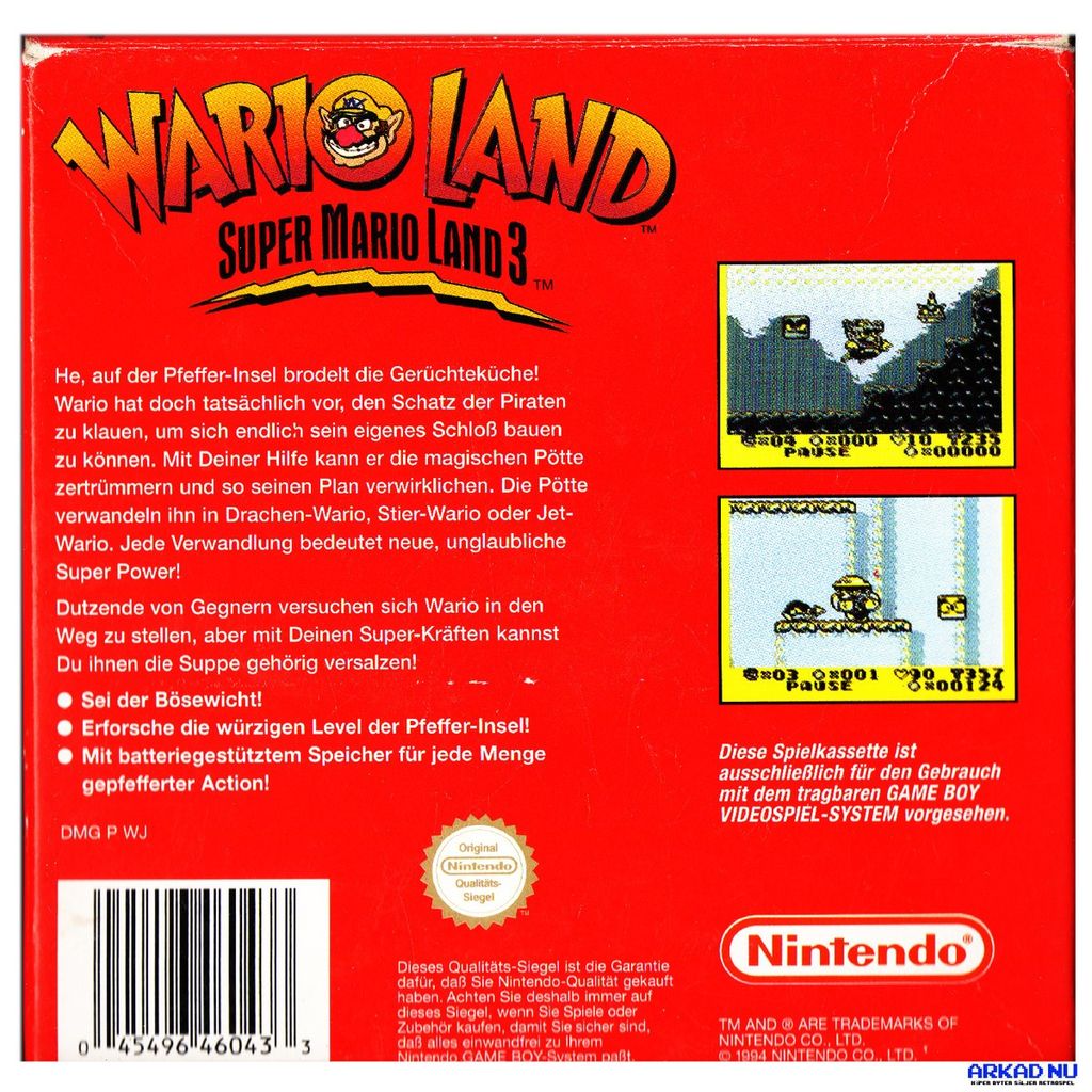 SUPER MARIO LAND 3 WARIO LAND GAMEBOY - BERGSALA - DMG-WJ-NOE