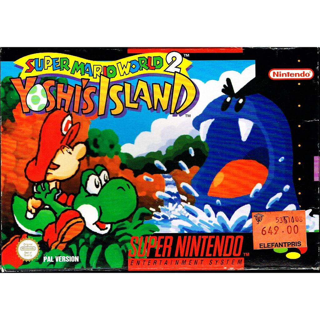 Super Mario World 2: Yoshi's Island or simply Yoshi's Island, is a 1995 platform video game developed and published by Nintendo for the Super Nintendo Entertainment System. Acting as a prequel to 1990's Super Mario World, the game casts players as Yoshi as he escorts Baby Mario through 48 levels in order to reunite him with his brother Luigi, who had been kidnapped by Baby Bowser's minions. As a Super Mario series platformer, Yoshi runs and jumps to reach the end of the level while solving puzzles and collecting items. In a style new to the series, the game has a hand-drawn aesthetic and is the first to have Yoshi as its main character. The game introduces his signature abilities to flutter jump, produce eggs from swallowed enemies, and transform into vehicles.