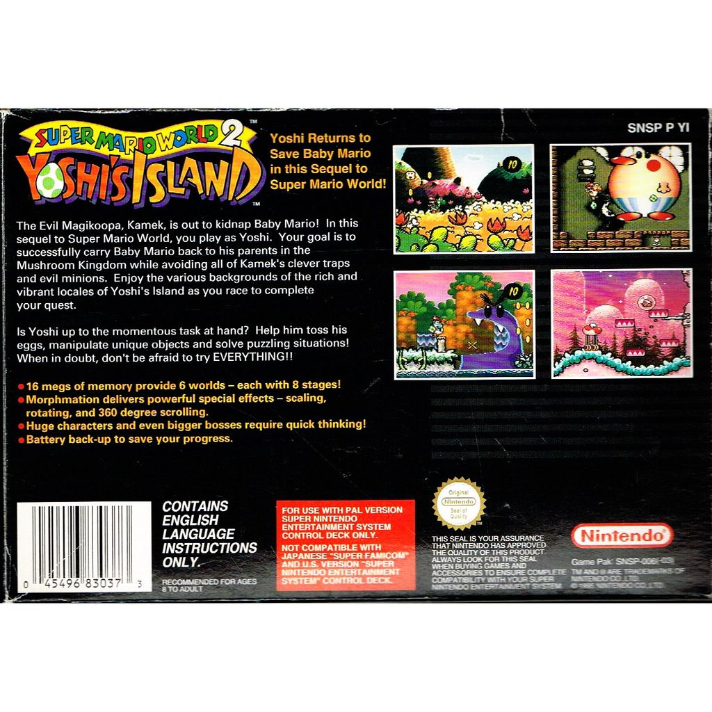 Beskrivning av SUPER MARIO WORLD 2 YOSHIS ISLAND SNES SCN MED SVENSKT HÄFTE A4