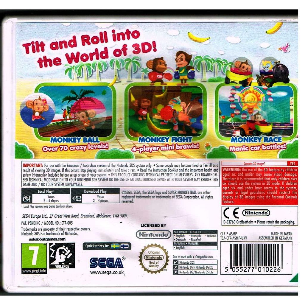 SUPER MONKEY BALL 3D 3DS - TSA-CTR-ASMP-UKV