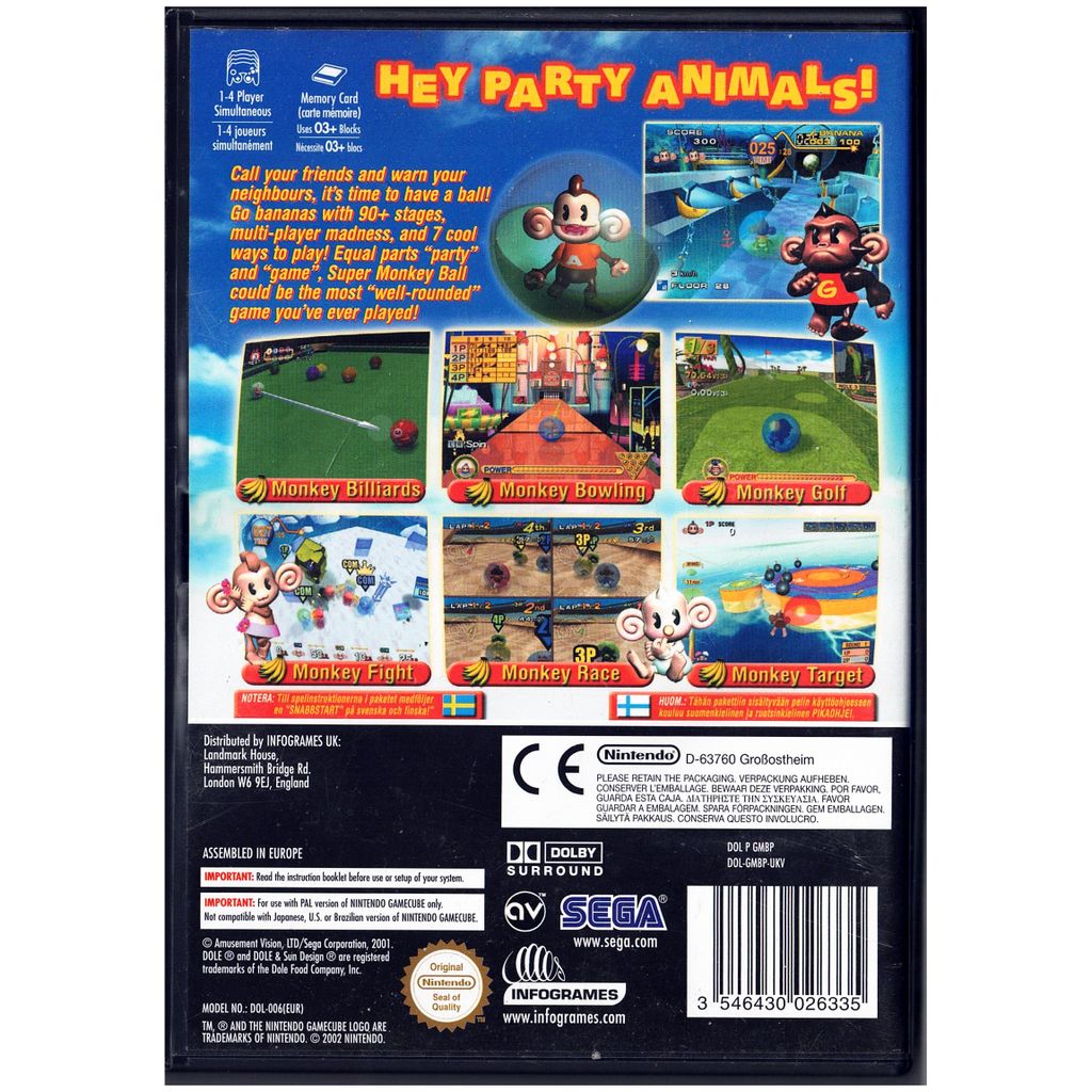 SUPER MONKEY BALL GAMECUBE - SVENSK UTGÅVA - DOL-GMBP-UKV