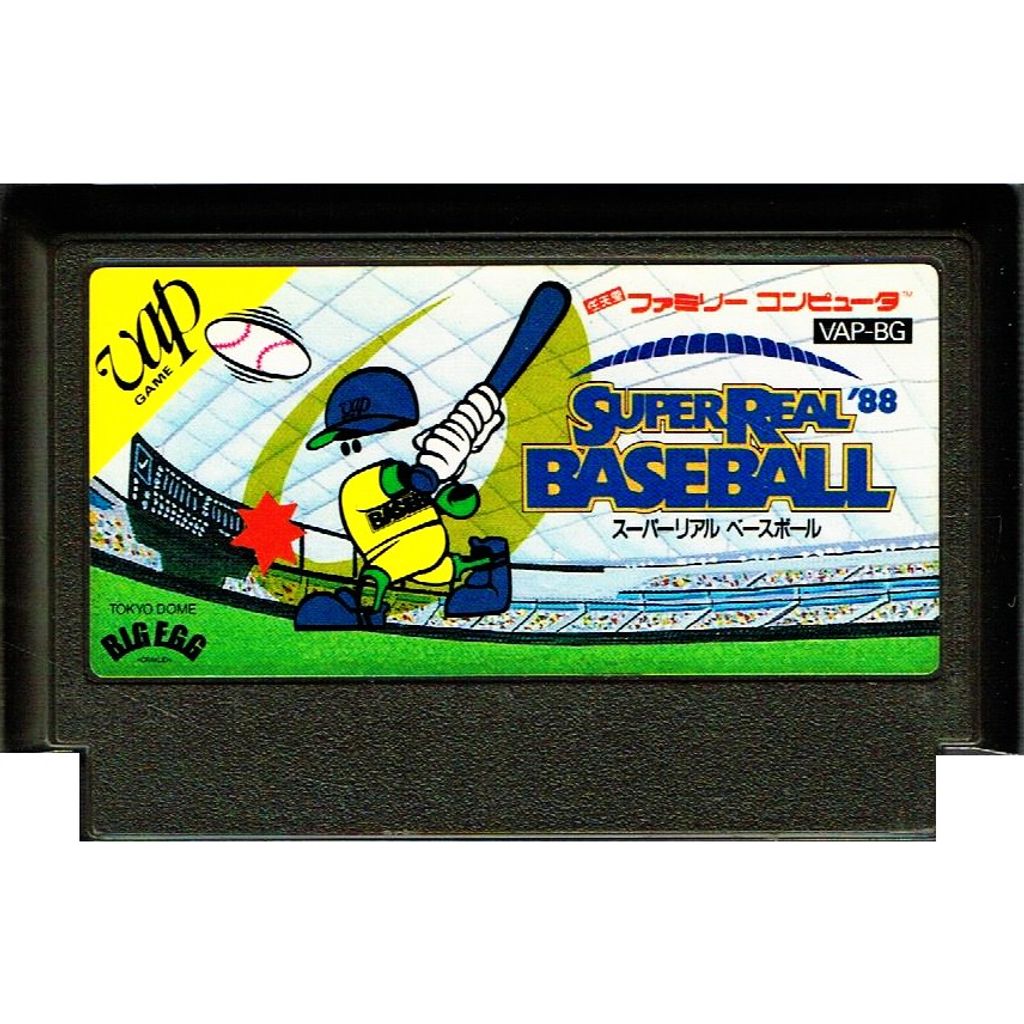 Super Real Baseball '88 is a baseball game developed by Pax Softonica for the Famicom and published in Japan by Vap in 1988. After Namco excited the market for baseball games with the release of Pro Yakyuu Family Stadium, many other companies attempted to meet the demand for more baseball games.