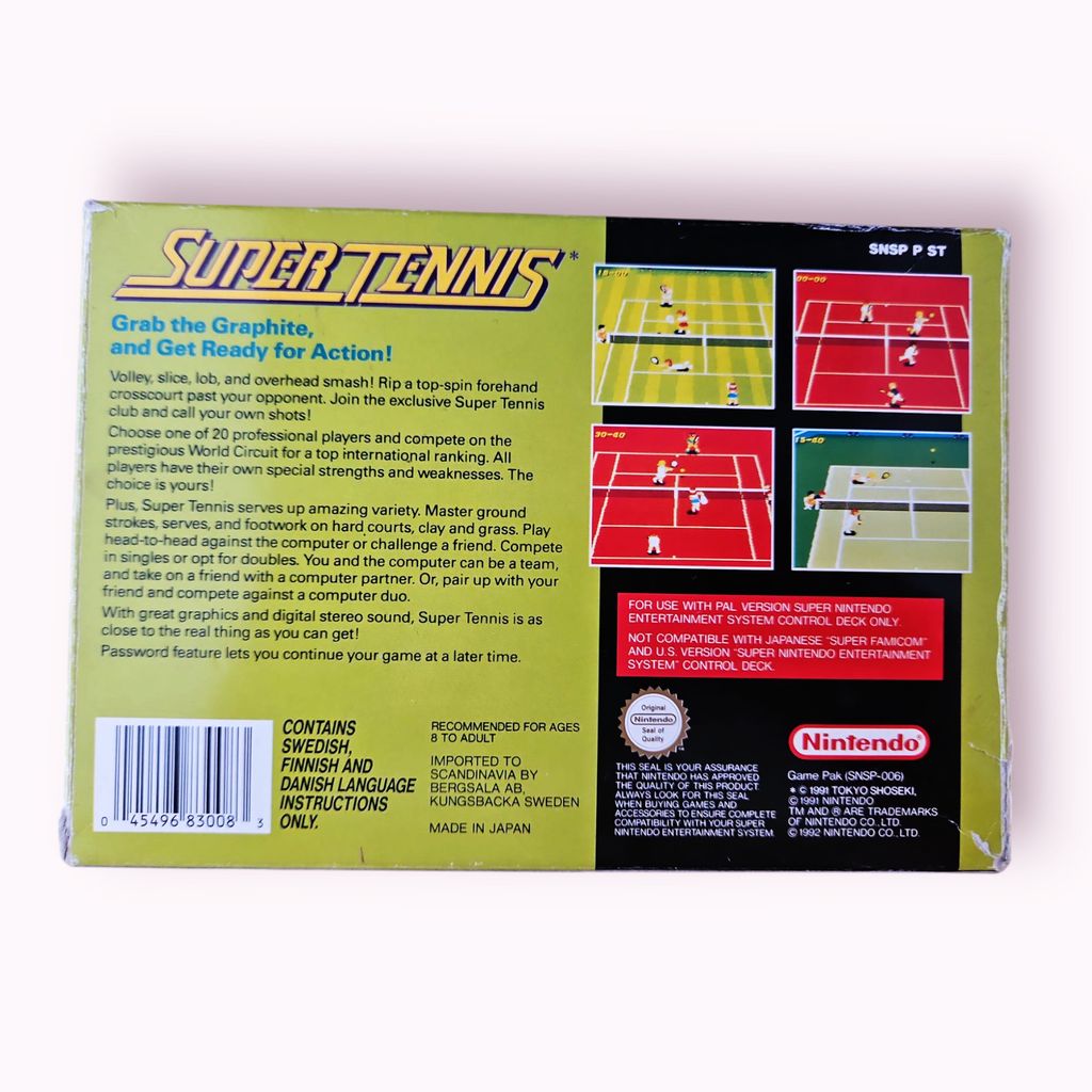 Super Tennis (SNES SCN) – Klassisk Tennissimulering i Toppklass! 🎾 Upplev Super Nintendo-erans bästa tennisspel med snabb gameplay, responsiva kontroller och strategiska slag! Super Tennis erbjuder en utmanande singelspelarkampanj samt spännande multiplayer-matcher där du kan tävla mot vänner. Med ett stort urval av spelare och realistisk bollfysik är detta ett måste för alla sportfantaster!