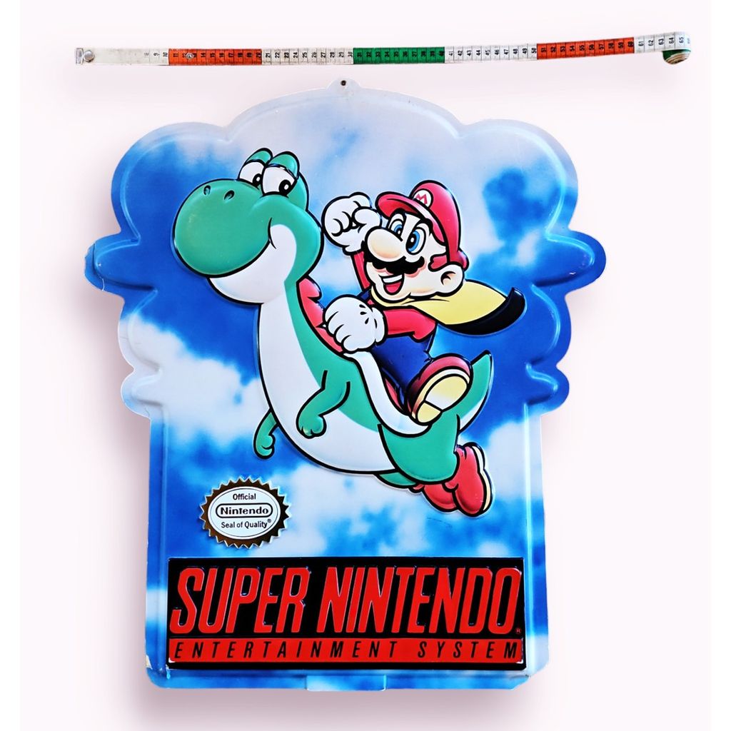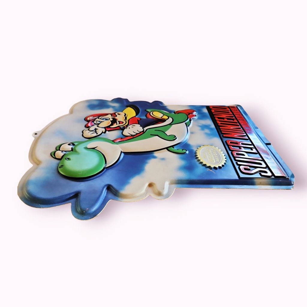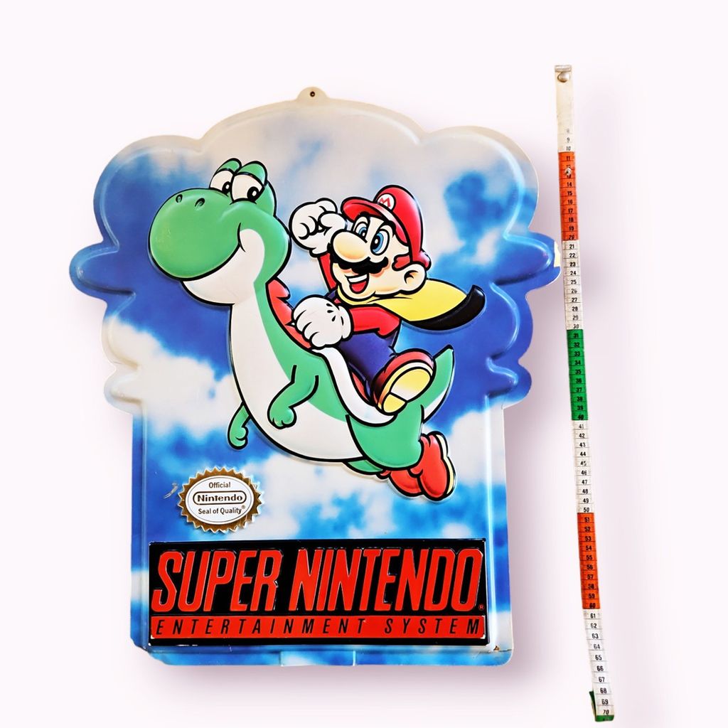 Beskrivning av SUPERNINTENDO SKYLT DUBBELSIDIG HÄNGBAR 60X55CM SUPERNINTENDO SKYLT DUBBELSIDIG HÄNGBAR 60X55CM KRISPIG MED SKAVANKER