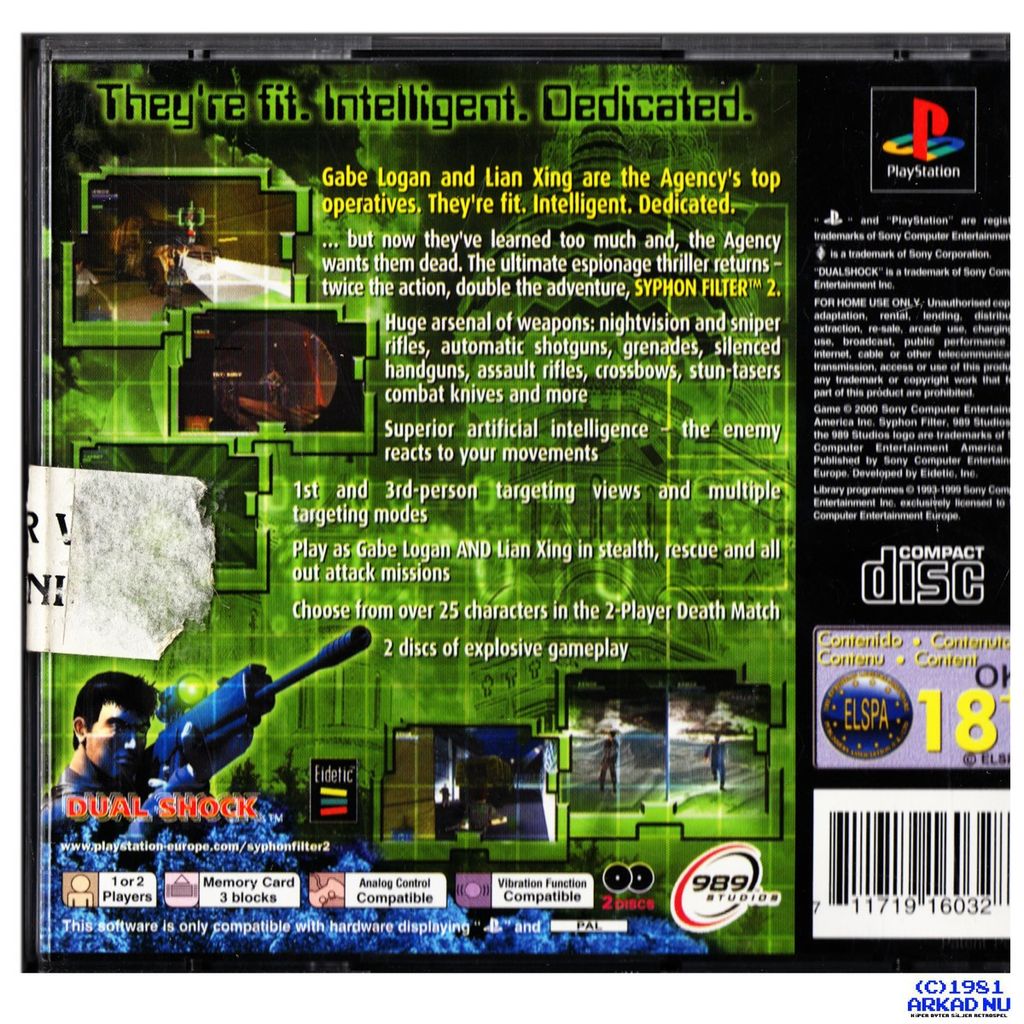 Syphon Filter 2 is a third-person shooter stealth video game developed by Eidetic and published by 989 Studios exclusively for PlayStation.