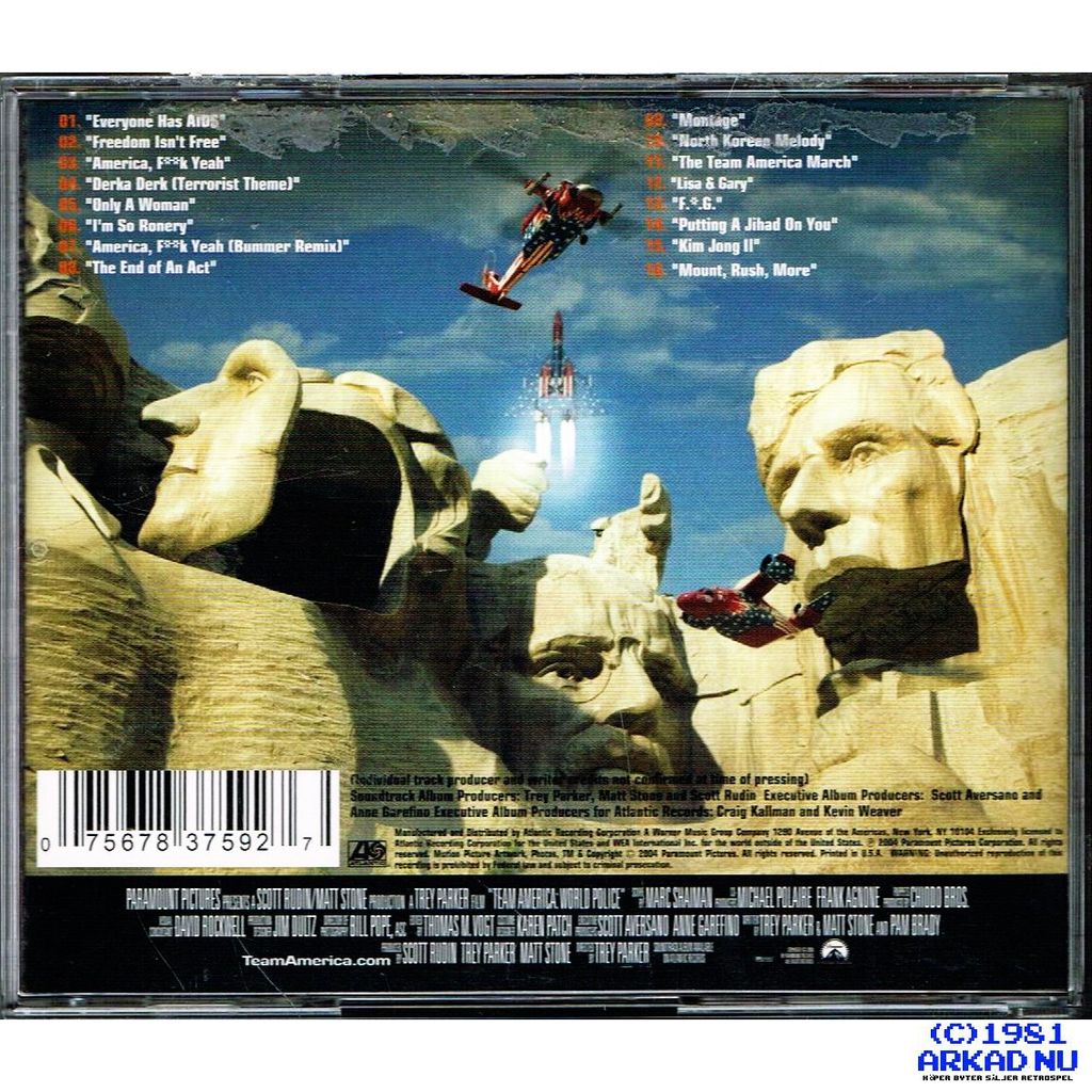 Beskrivning av TEAM AMERICA WORLD POLICE SOUNDTRACK CD TEAM AMERICA WORLD POLICE SOUNDTRACK CD - 83759-2 KOMPLETT I BOX