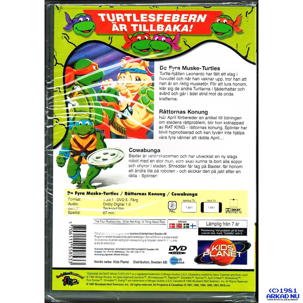 Beskrivning av TEENAGE MUTANT HERO TURTLES DE FYRA MUSKE TURTLES 4/7 DVD