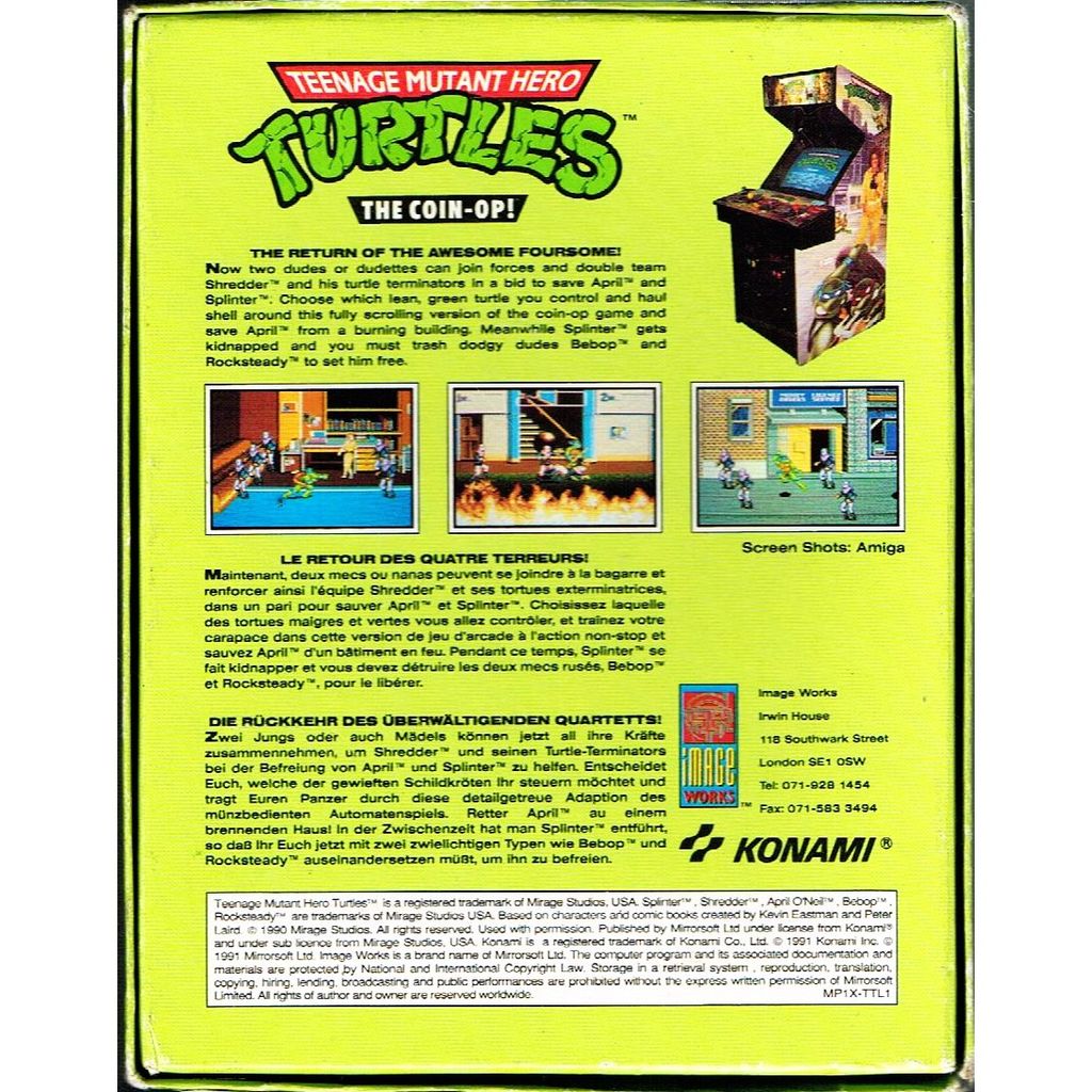 Beskrivning av TEENAGE MUTANT HERO TURTLES THE COIN OP C64 KASSETT