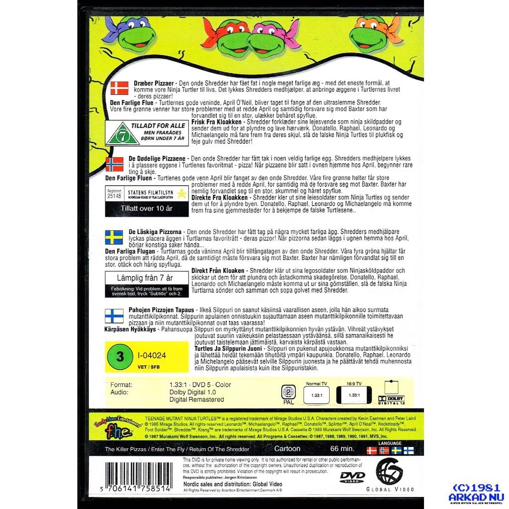 Beskrivning av TEENAGE MUTANT HERO TURTLES THE KILLER PIZZAS 2/7 DVD