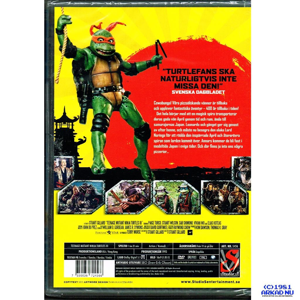 TEENAGE MUTANT NINJA TURTLES 3 DVD SVENSK UTGÅVA