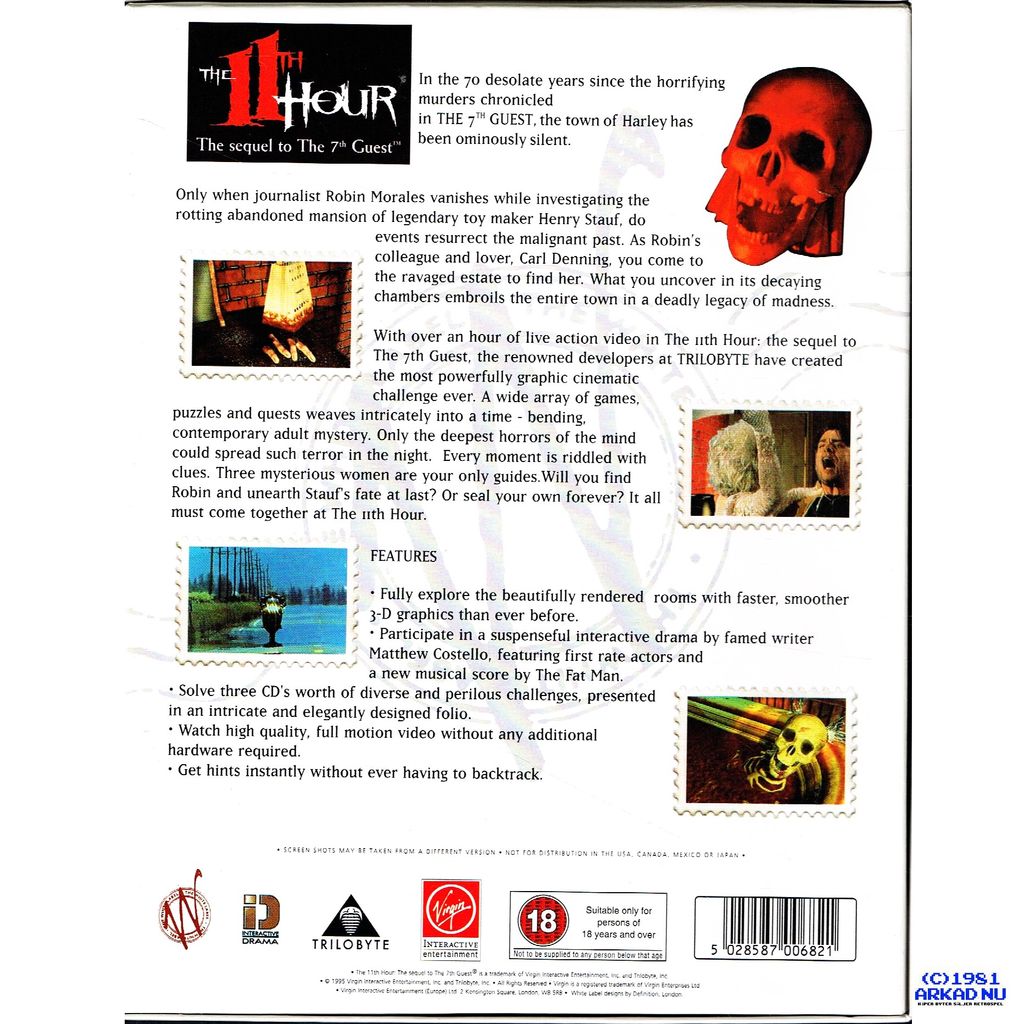 Beskrivning av THE 11TH HOUR PC BIGBOX THE 11TH HOUR PC BIGBOX WHITE LABEL The 11th Hour is a 1995 interactive movie puzzle adventure game with a horror setting. It is the sequel to the 1993 game The 7th Guest. KOMPLETT I BOX