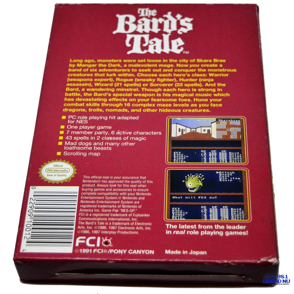 Remade and distributed by Electronic Arts, and commissioned by Interplay Productions in 1991, The Bards Tale: Tales of The Unknown was also created for the NES. However, much of it's gameplay, mapping, and combat differ from it's original counterparts.