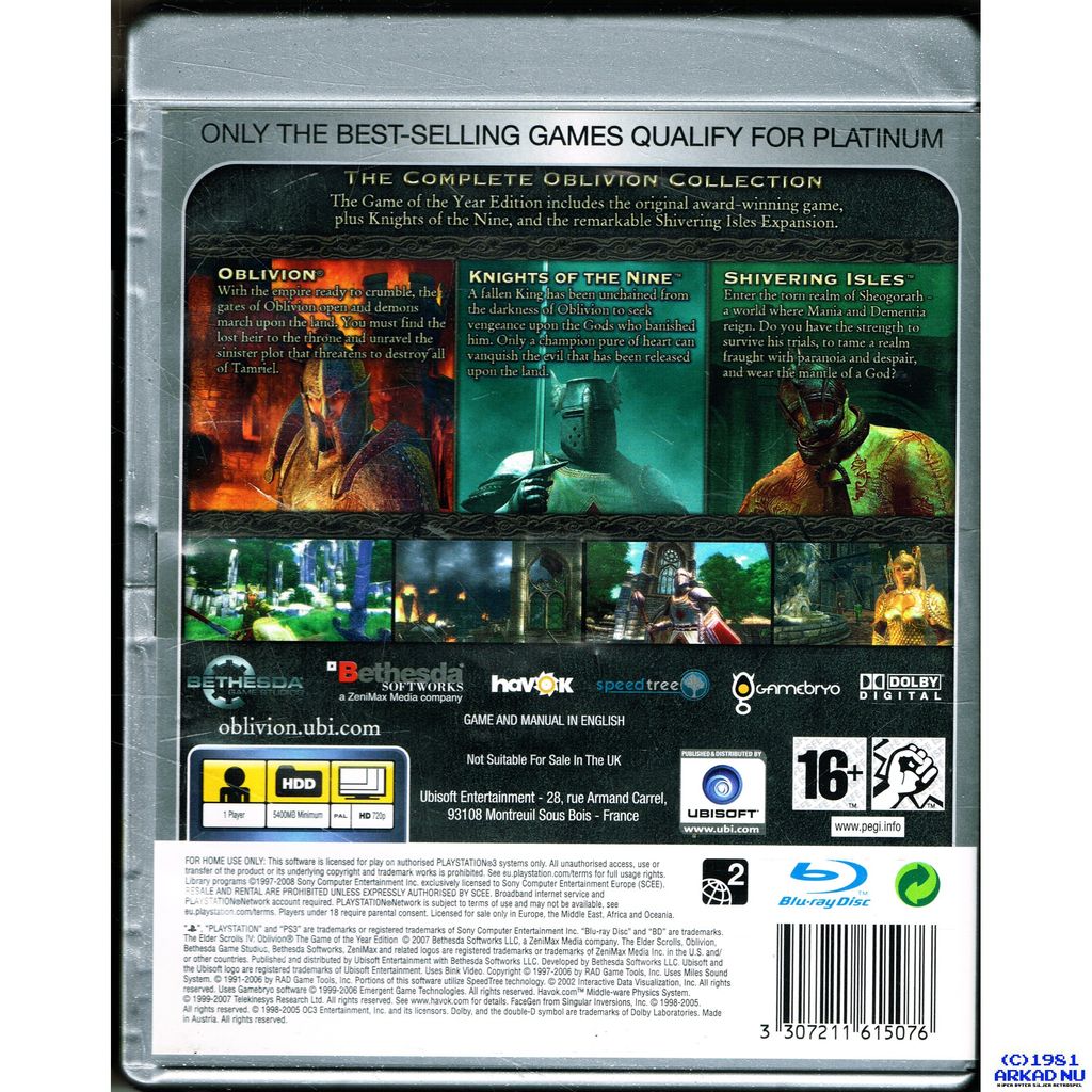 THE ELDER SCROLLS IV OBLIVION GAME OF THE YEAR ED PLATINUM PS3 BLES-00163/P
