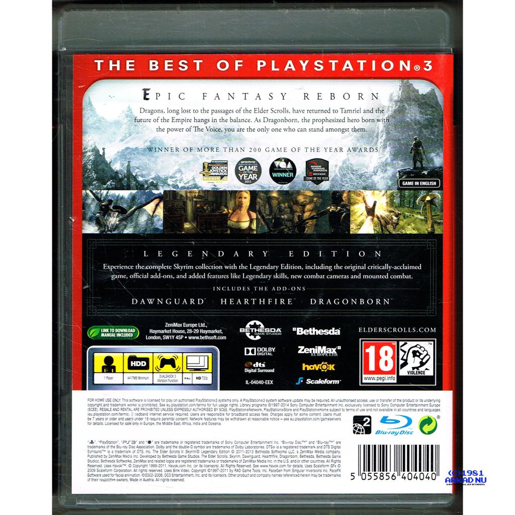 THE ELDER SCROLLS V SKYRIM LEGENDARY EDITION PS3 ESSENTIALS - BLES-01885/E