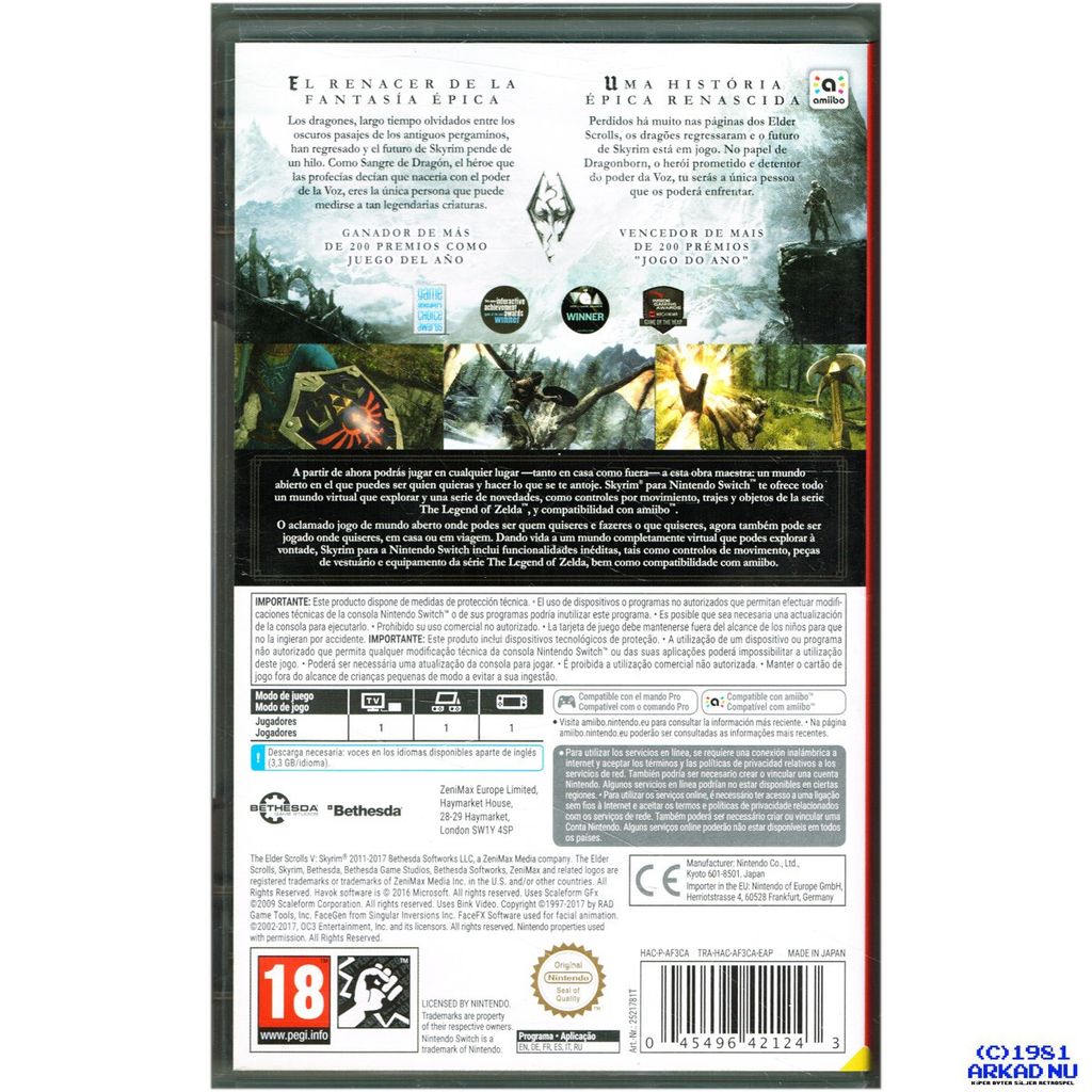 THE ELDER SCROLLS V SKYRIM SWITCH - TRA-HAC-AF3CA-EAP