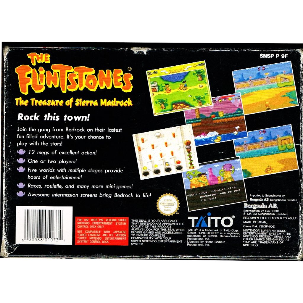Beskrivning av THE FLINTSTONES THE TREASURE OF SIERRA MADROCK SNES SCN