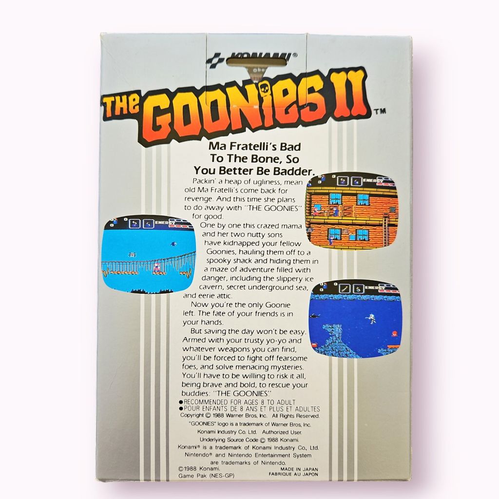 The Goonies II , The Goonies II: The Fratellis' Last Stand är ett äventyrsspel utvecklat och utgivet av Konami till NES. Det släpptes den 18 mars 1987 i Japan, i november 1987 i Nordamerika, och den 19 december 1988 i Europa.Spelet är uppföljare till The Goonies.