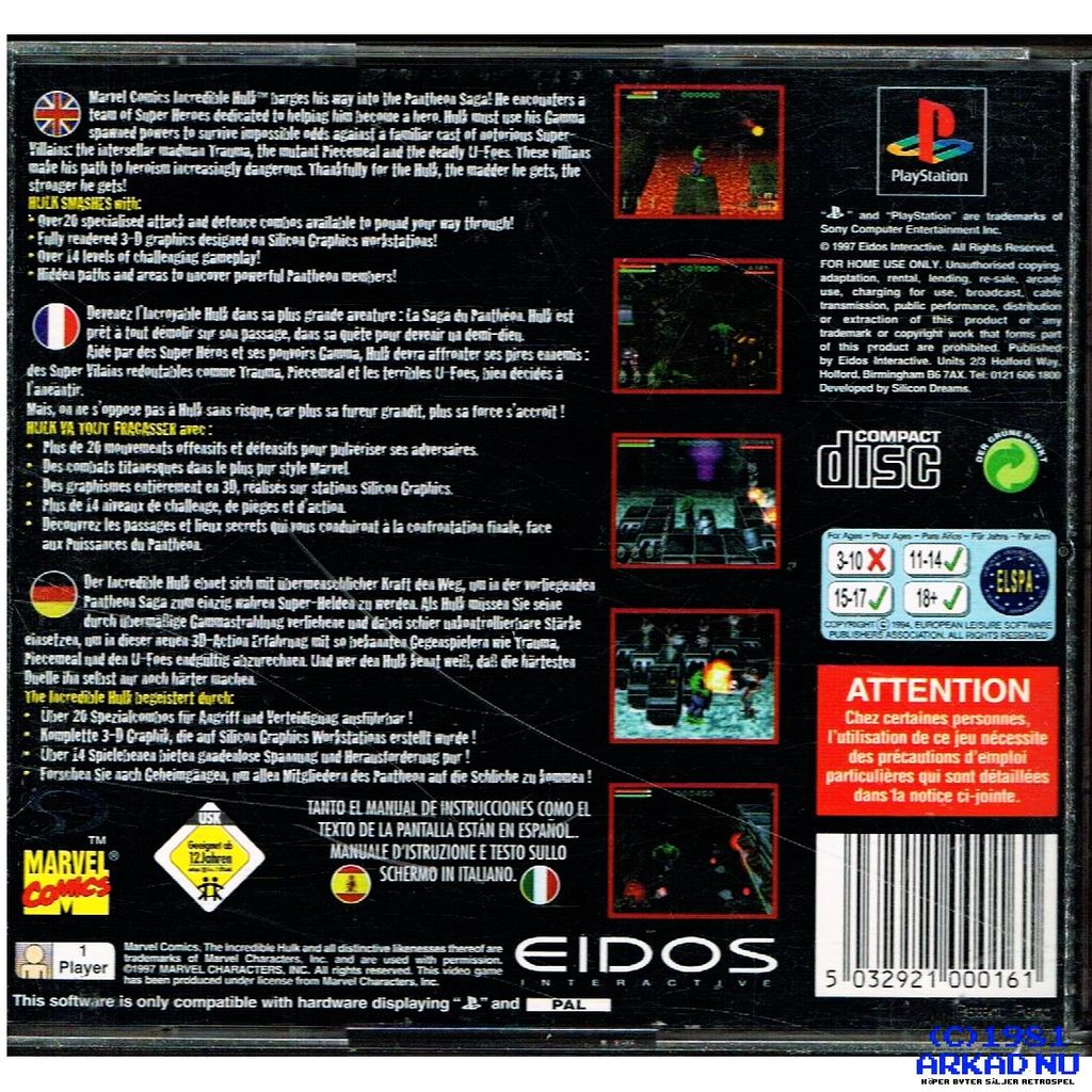 THE INCREDIBLE HULK THE PANTHEON SAGA PS1 - SLES-00109