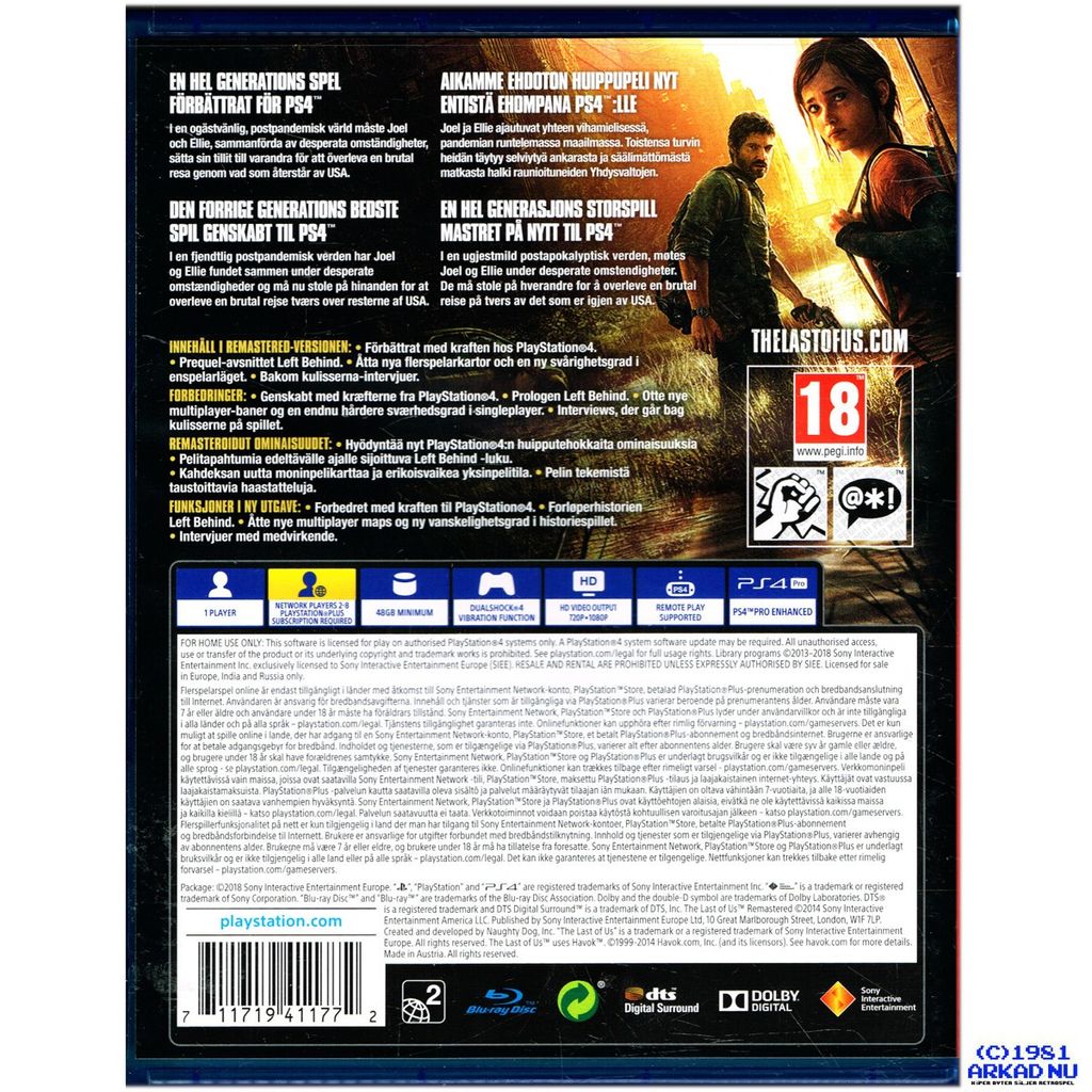 THE LAST OF US REMASTERED PS4 - CUSA-00556/H SVENSK UTGÅVA PLAYSTATION HITS