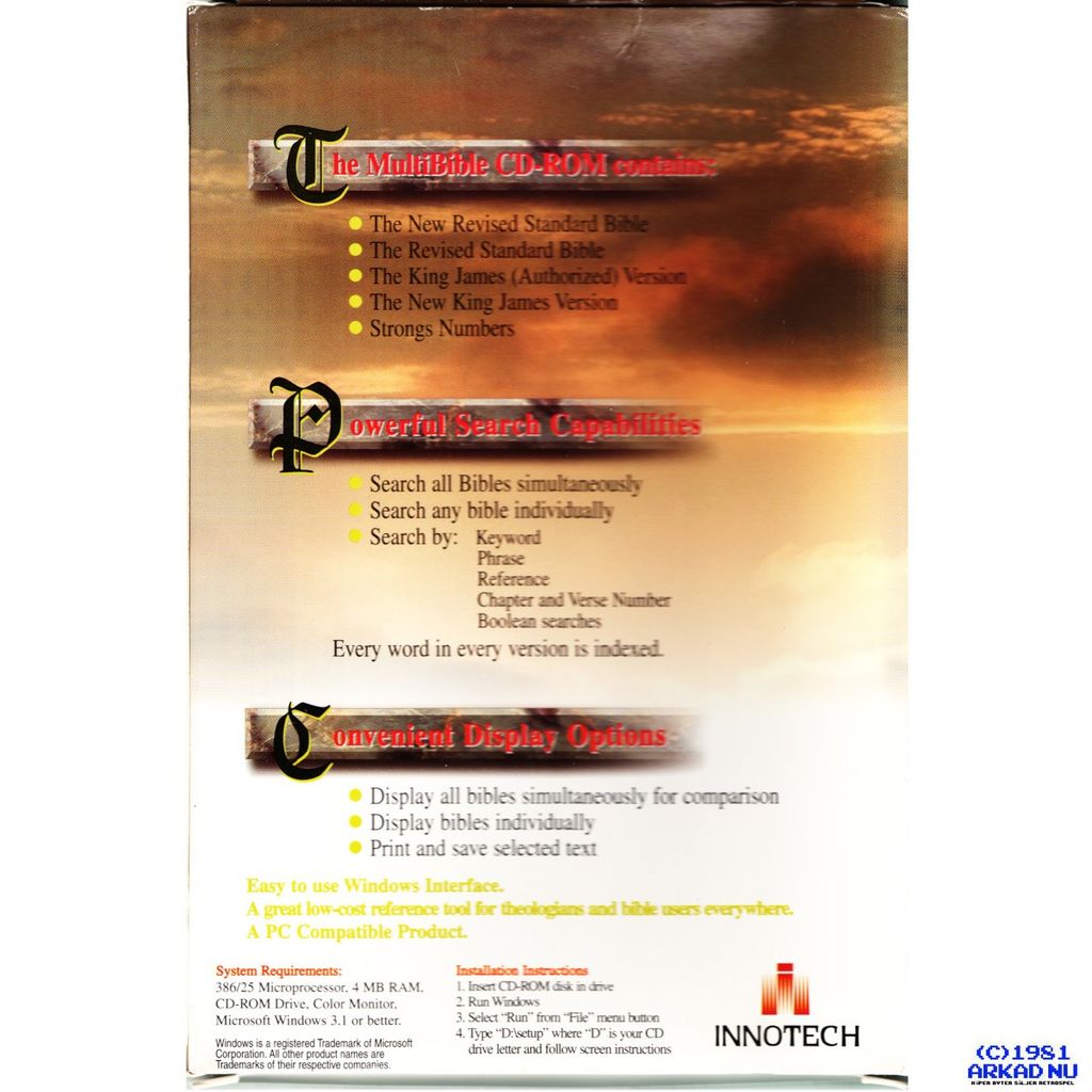 Beskrivning av THE MULTI BIBLE PC THE MULTI BIBLE PC Five versions of the bible on CD-ROM KOMPLETT I BOX