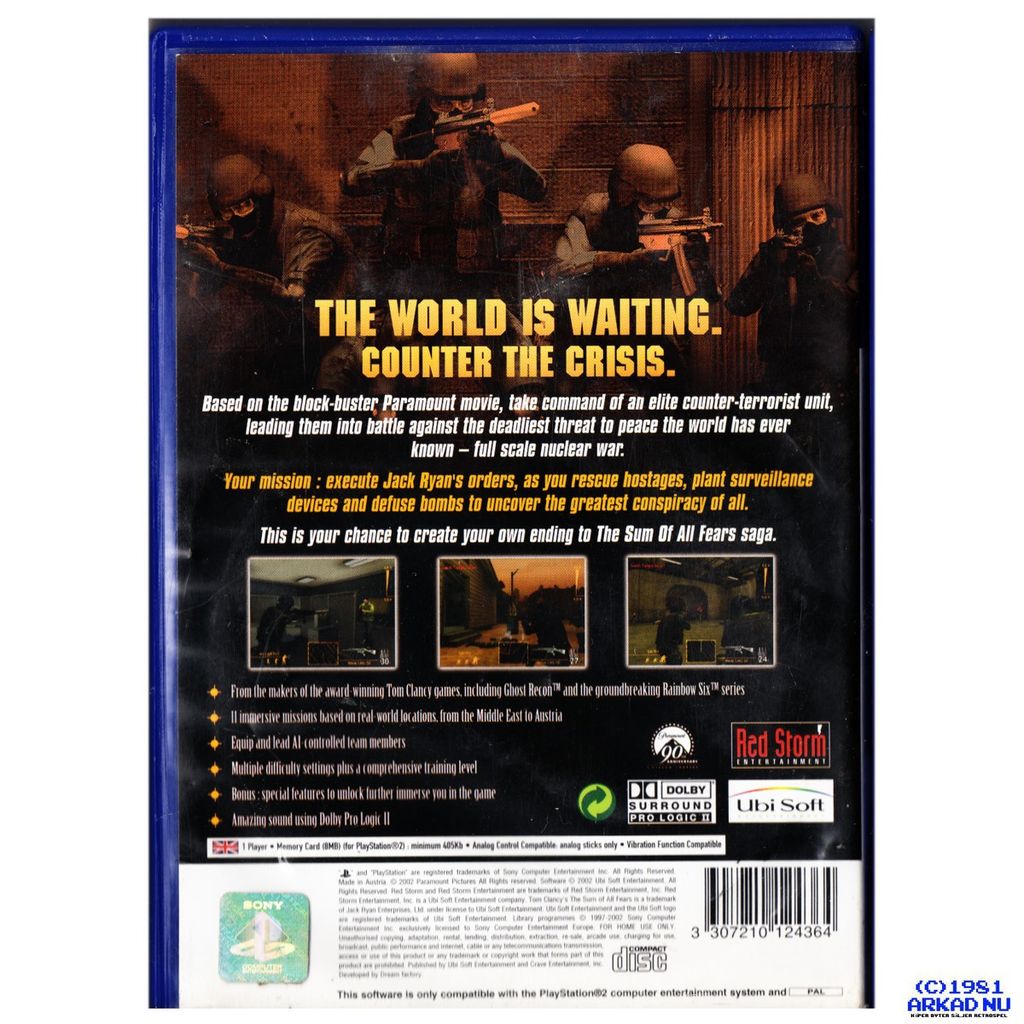 The Sum of All Fears is a 2002 tactical shooter video game developed by Red Storm Entertainment and published by Ubi Soft. It was released for Microsoft Windows, PlayStation 2 (only released in Europe) and GameCube, based on the Ghost Recon game engine; another version was released for the Game Boy Advance.
