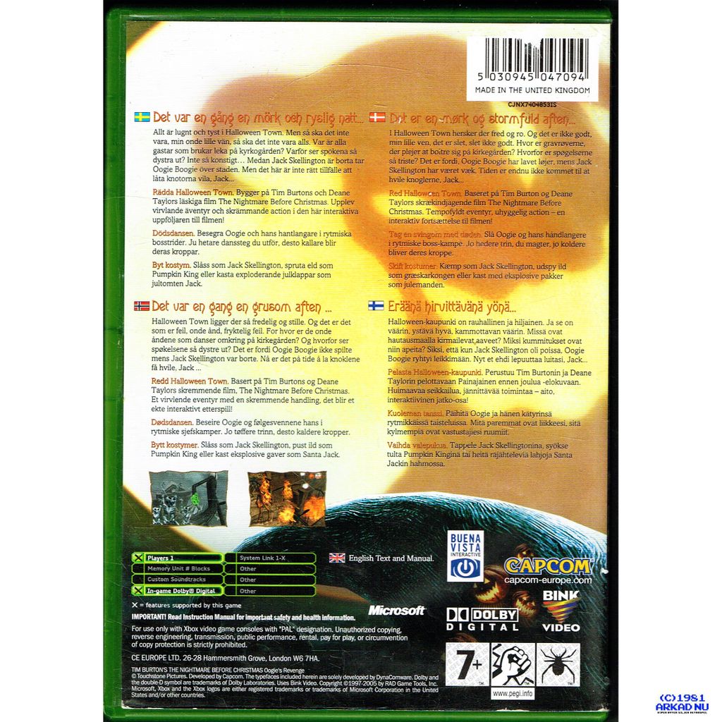 TIM BURTON'S THE NIGHTMARE BEFORE CHRISTMAS OOGIE'S REVENGE XBOX SVENSK UTGÅVA