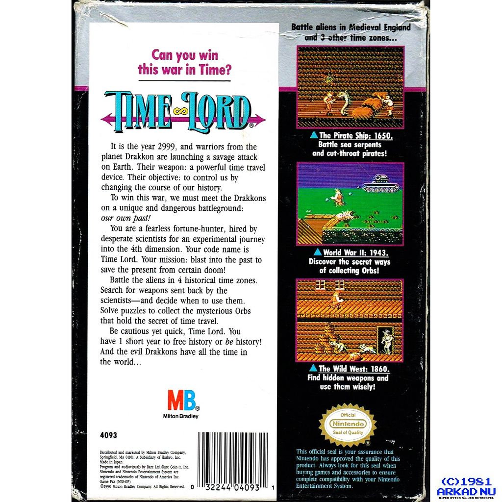 Time Lord is a side-scrolling action-platform video game developed by Rare and published by Milton Bradley Company for the Nintendo Entertainment System. It was released in North America in September 1990 and in Europe in 1991.