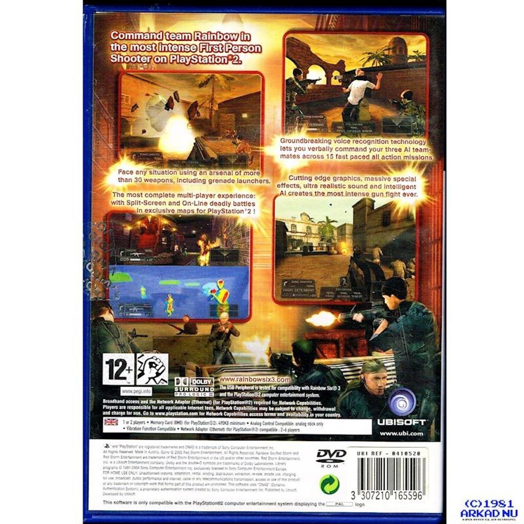 Tom Clancy's Rainbow Six 3 is the sixth installment of the Rainbow Six Franchise, developed and published by Ubisoft. It is a console-spin off of Tom Clancy's Rainbow Six 3: Raven Shield, featuring the same game engine, models, textures, and artwork but has a significantly different plot, game mechanics, and gameplay.
