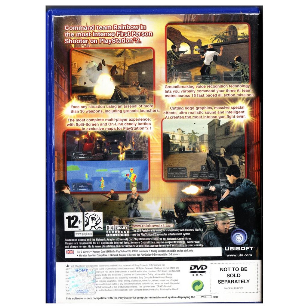 Tom Clancy's Rainbow Six 3 is the sixth installment of the Rainbow Six Franchise, developed and published by Ubisoft. It is a console-spin off of Tom Clancy's Rainbow Six 3: Raven Shield, featuring the same game engine, models, textures, and artwork but has a significantly different plot, game mechanics, and gameplay.