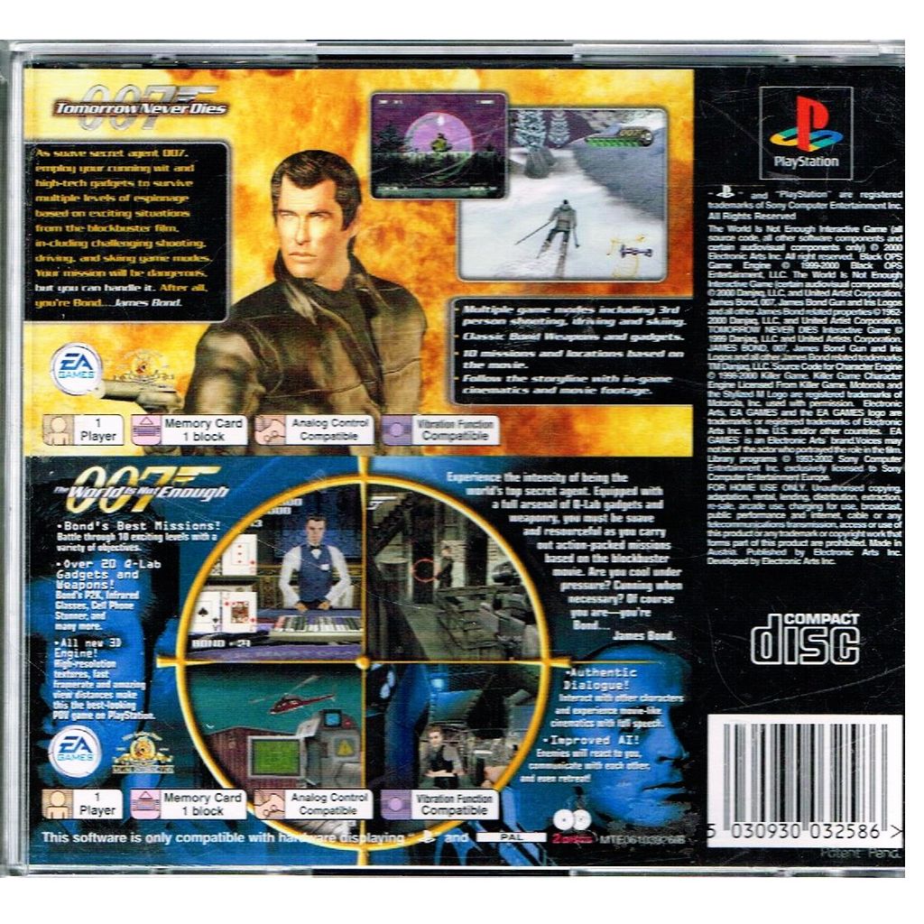 Beskrivning av TOMORROW NEVER DIES + THE WORLD IS NOT ENOUGH 2 GAMES PS1