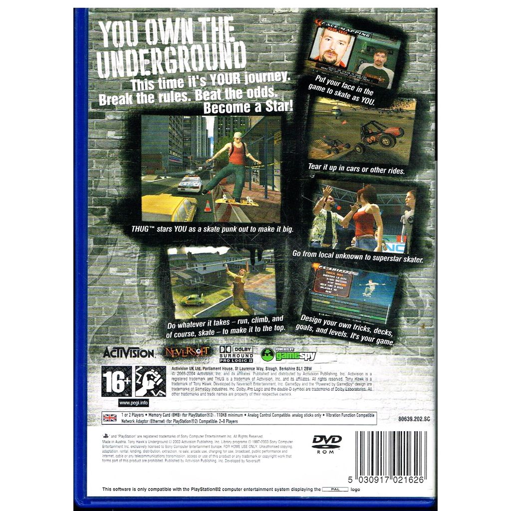 TONY HAWKS UNDERGROUND PS2 - SLES-51848