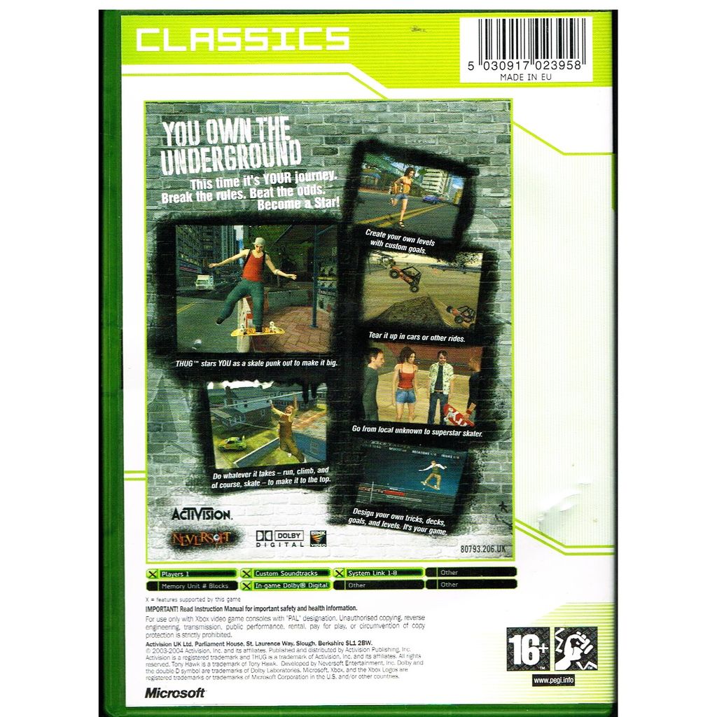 TONY HAWKS UNDERGROUND XBOX CLASSICS - 80793.206.UK