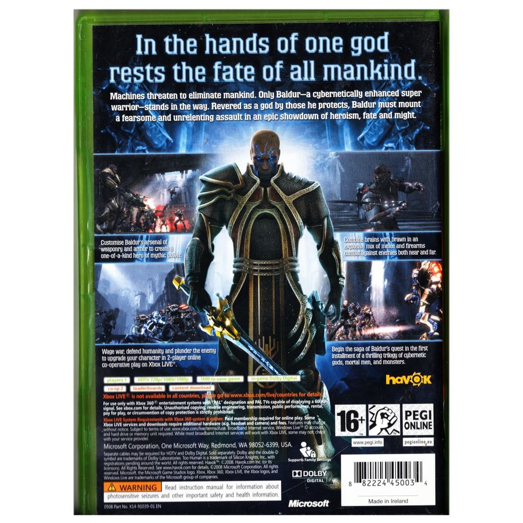 Too Human is an action role-playing game developed by Canadian developer Silicon Knights and published by Microsoft Studios for the Xbox 360 in August 2008. The game is notable for having remained in development hell for almost ten years, originally planned for release on the Sony PlayStation in 1999. Development later went into the Nintendo GameCube in 2000, before eventually selling the rights to Microsoft in 2005 and becoming an Xbox 360 exclusive.
