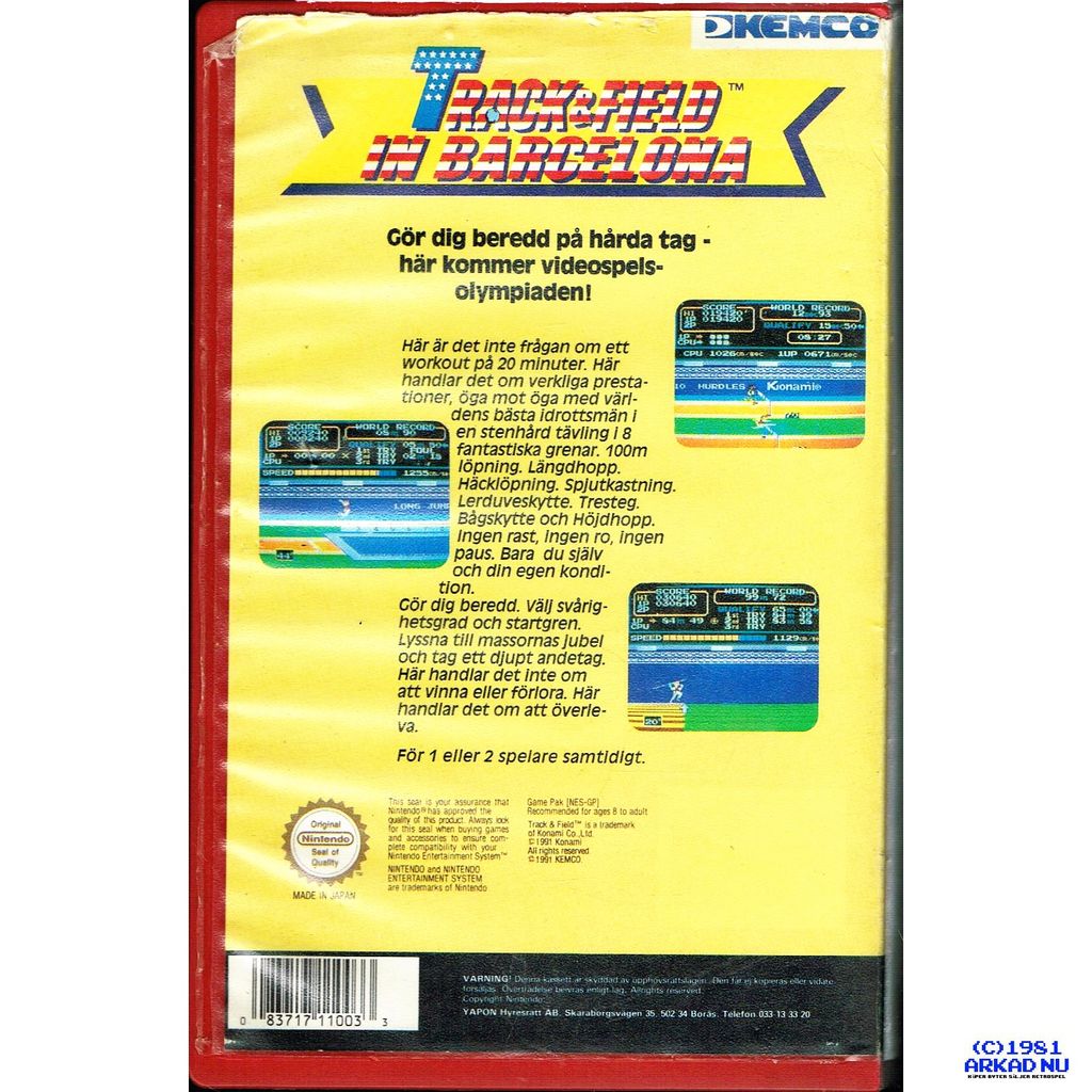 Beskrivning av TRACK & FIELD IN BARCELONA NES YAPON HYRBOX