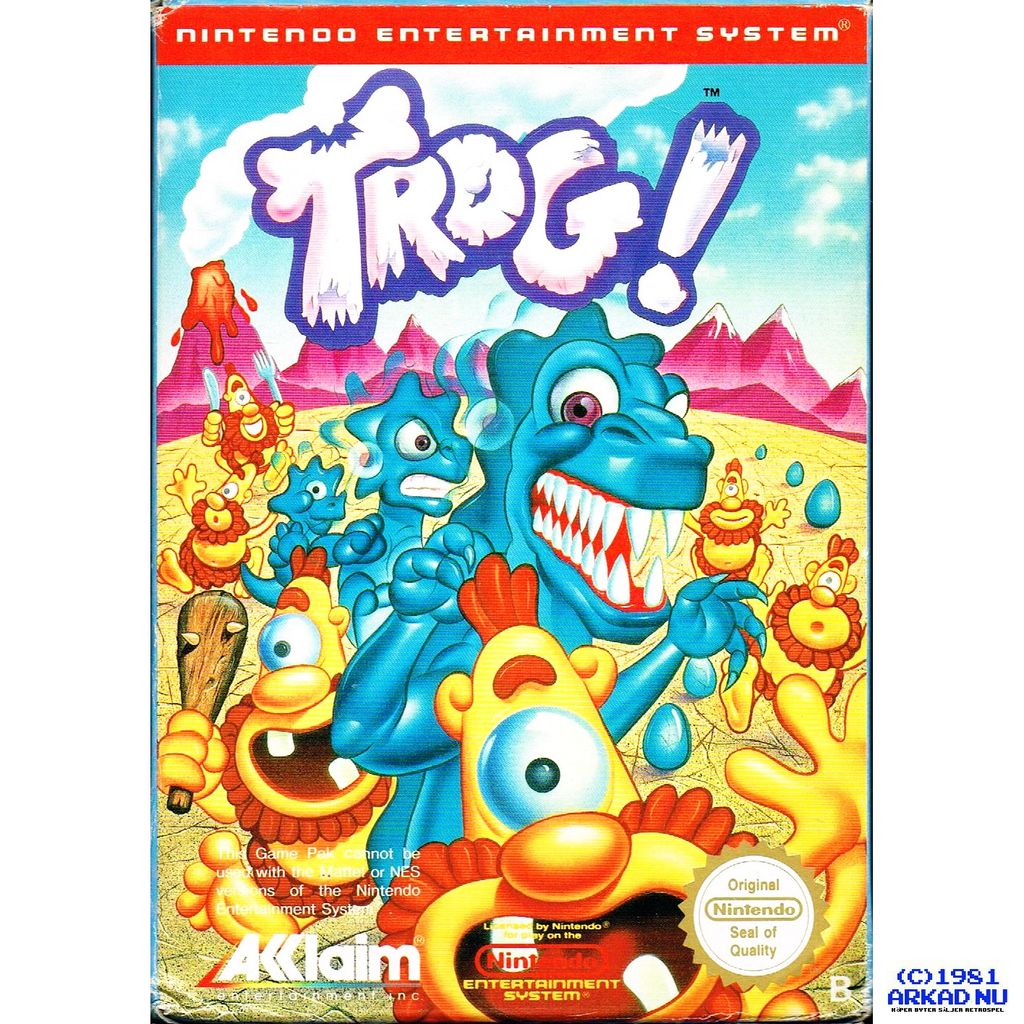 Trog is an arcade game developed by Midway Games and released in 1990. In the game, players control one of four dinosaurs and must collect eggs onscreen while being pursued by cavemen called "trog" (named after the word troglodyte) The game supports up to four players at once.
