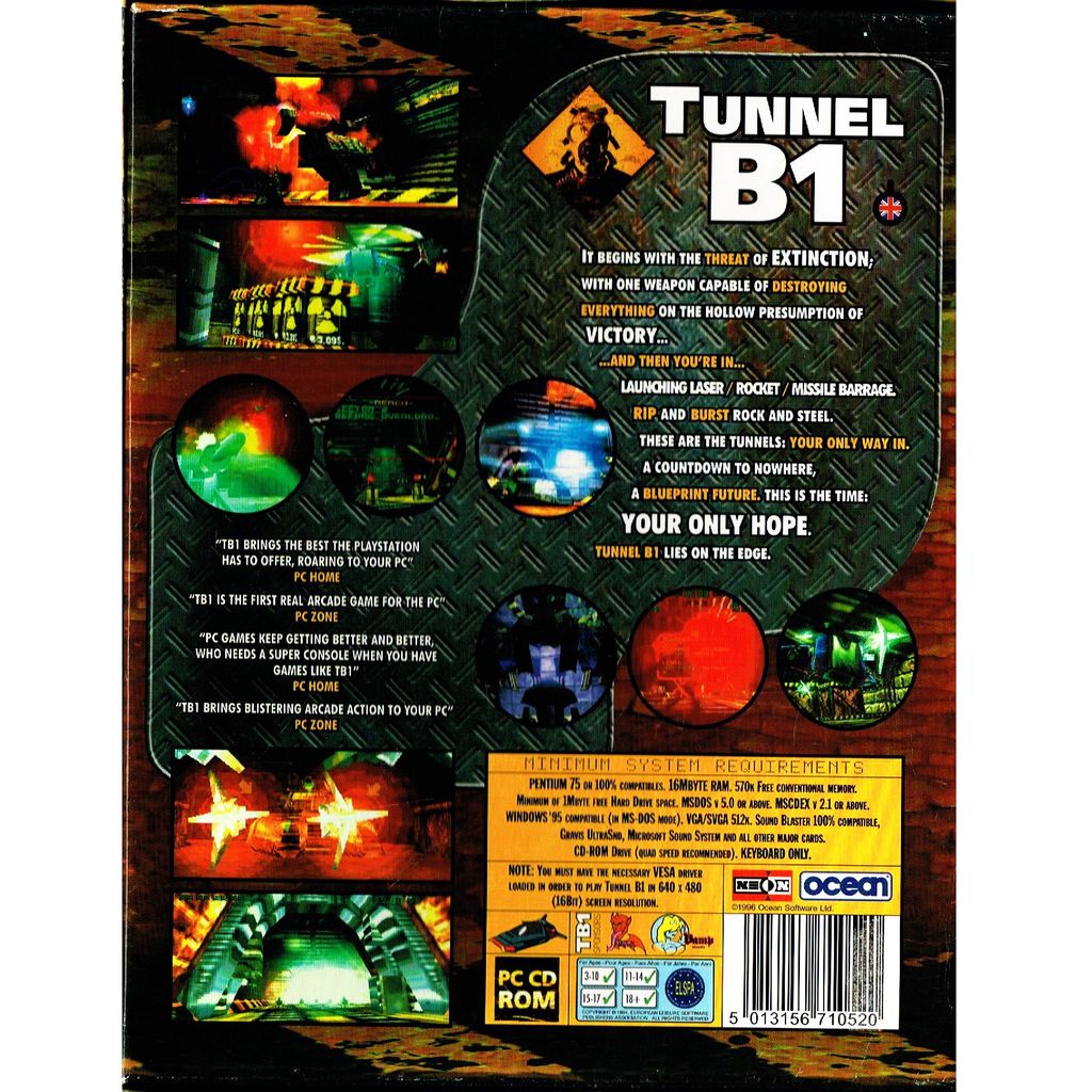 Tunnel B1 is a sci-fi first person shooter developed by NEON Software and published by Ocean Software in 1996. It features a soundtrack by Chris Hülsbeck of Turrican fame.