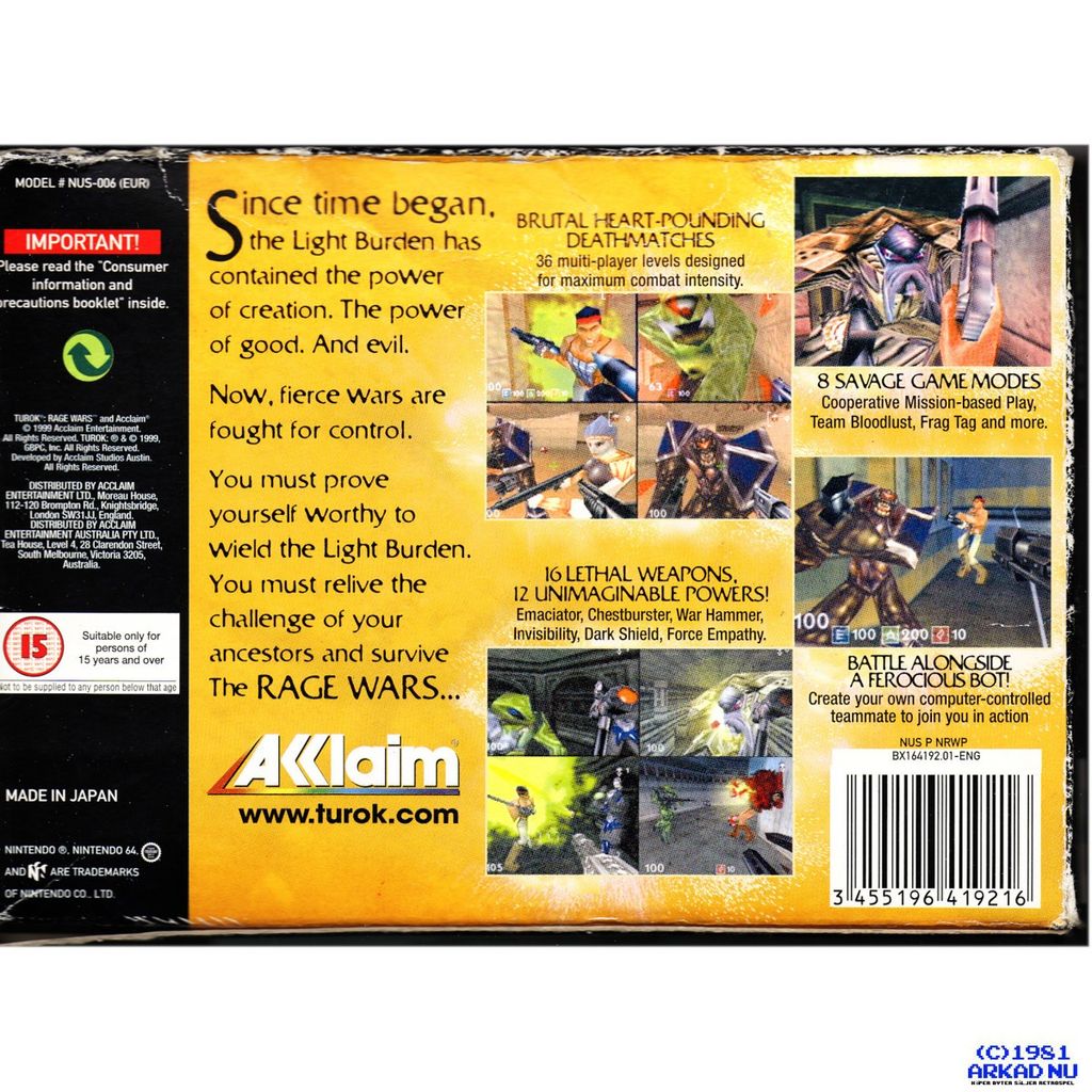 Beskrivning av TUROK RAGE WARS N64 NINTENDO 64