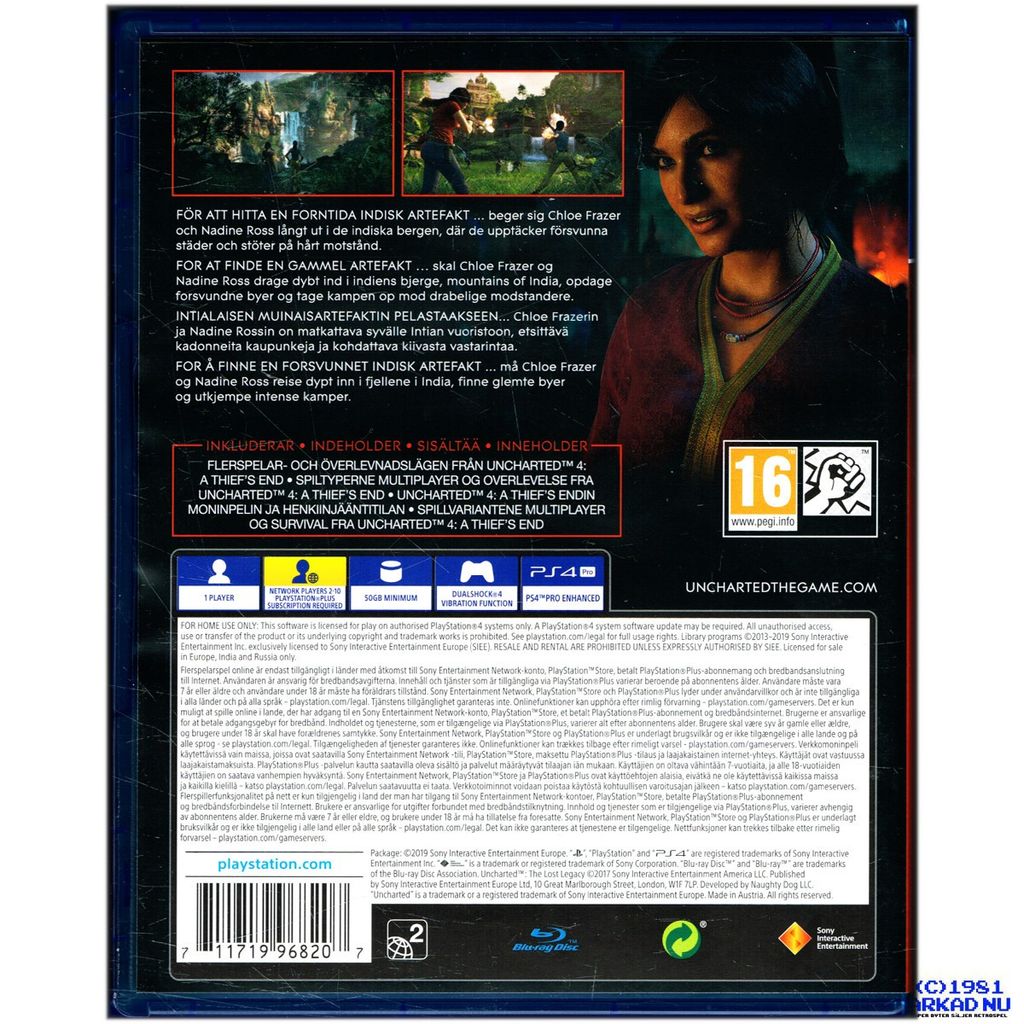 UNCHARTED THE LOST LEGACY PS4 (NORDISK UTGÅVA) - CUSA-07875/H PLAYSTATION HITS