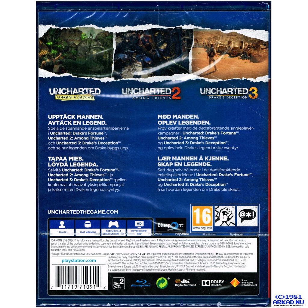 Beskrivning av UNCHARTED THE NATHAN DRAKE COLLECTION PS4 PLAYSTATION HITS