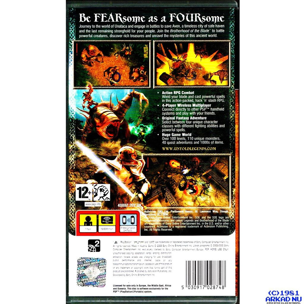 Ett storslaget action-RPG exklusivt för PSP! I Untold Legends: Brotherhood of the Blade ger du dig ut på ett episkt äventyr fyllt av monster, skatter och magiska krafter. Skapa din hjälte, välj klass och slåss genom mörka grottor och ruiner i jakt på ära och loot. Spelet kombinerar hack ’n slash-action med djup rollspelsmekanik – perfekt för äventyr på språng.