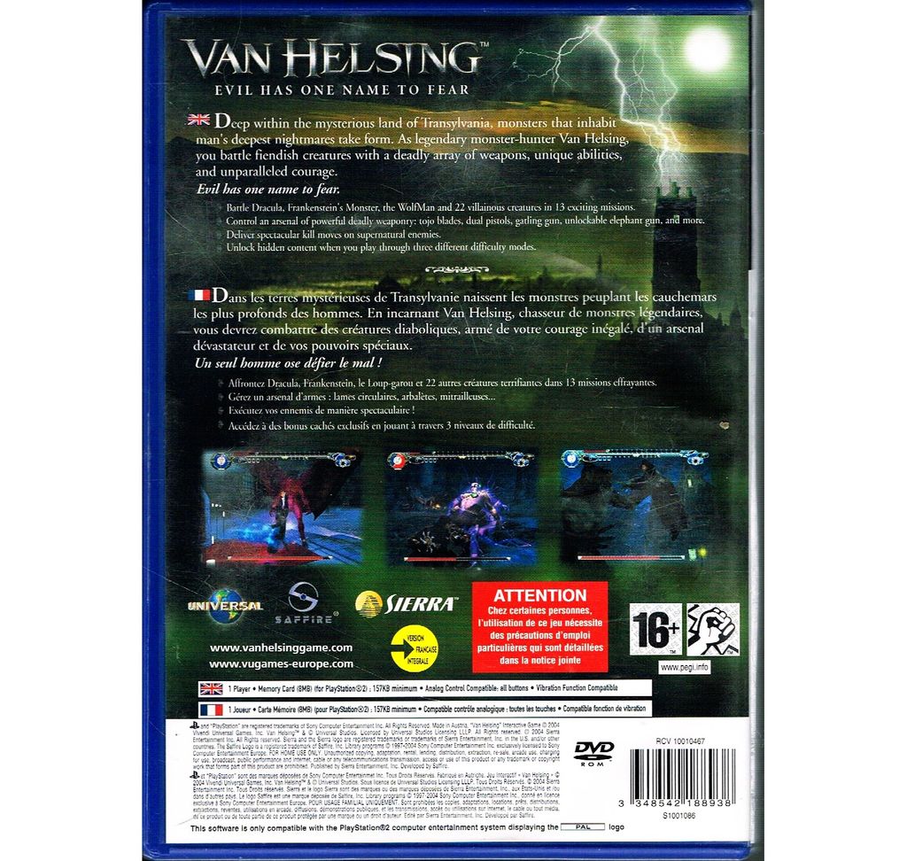 Van Helsing is a third-person shooter for the PlayStation 2, Xbox, Game Boy Advance and mobile phone, which is based on the 2004 action horror film of the same name by Stephen Sommers. Starting off with the killing of Mr. Hyde in Paris, the player must use the character of Van Helsing to hunt down Dracula in Transylvania.