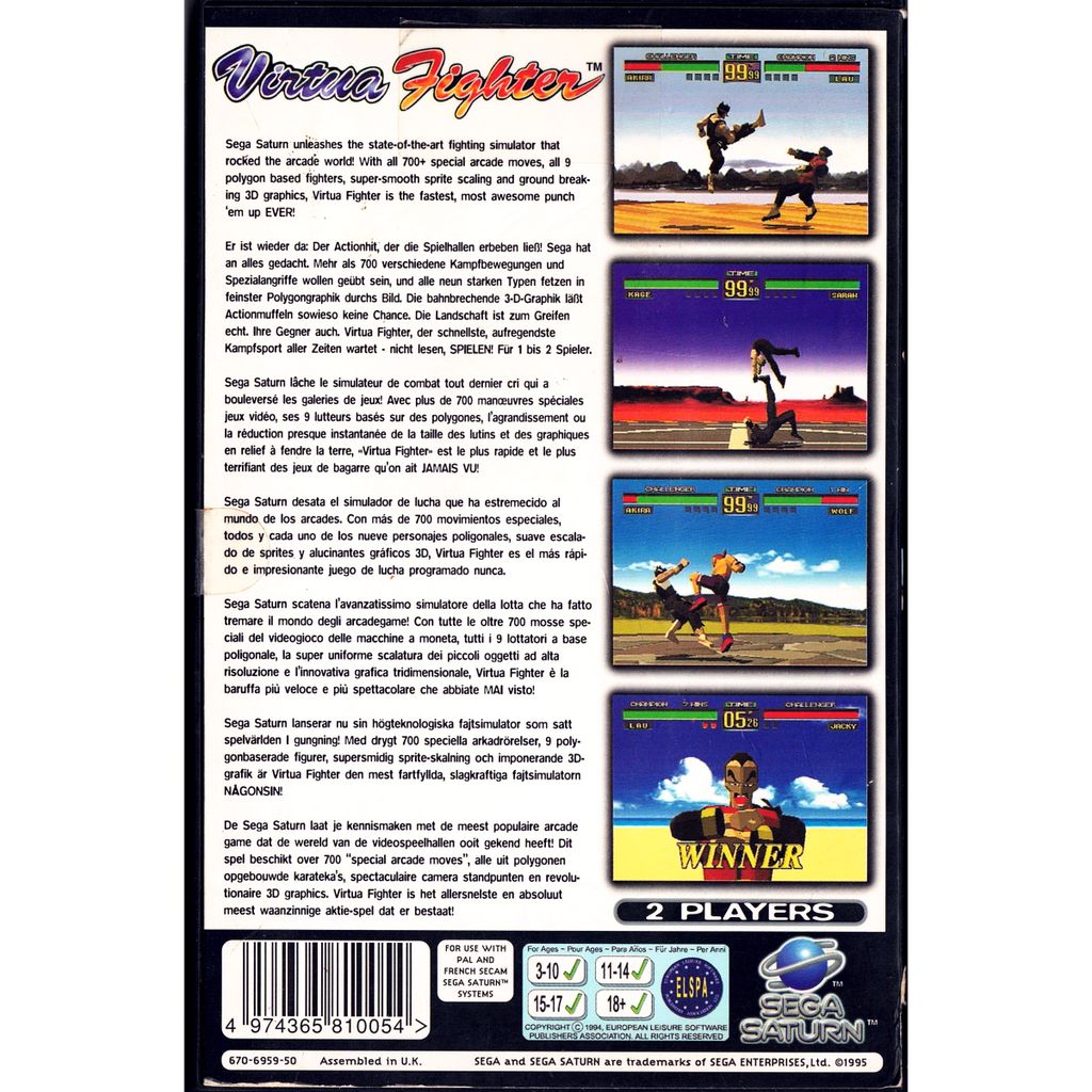 Beskrivning av VIRTUA FIGHTER SEGA SATURN RENTAL