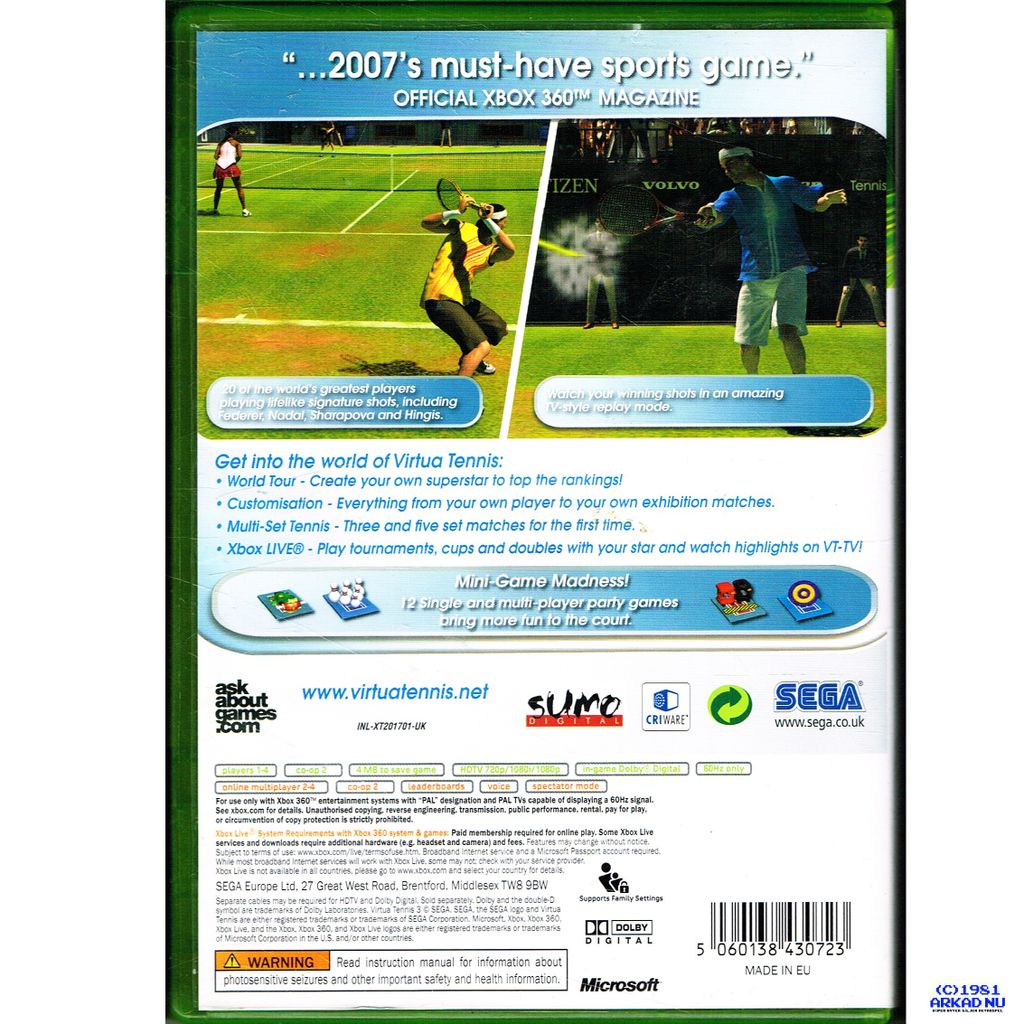 Beskrivning av VIRTUA TENNIS 3 XBOX 360