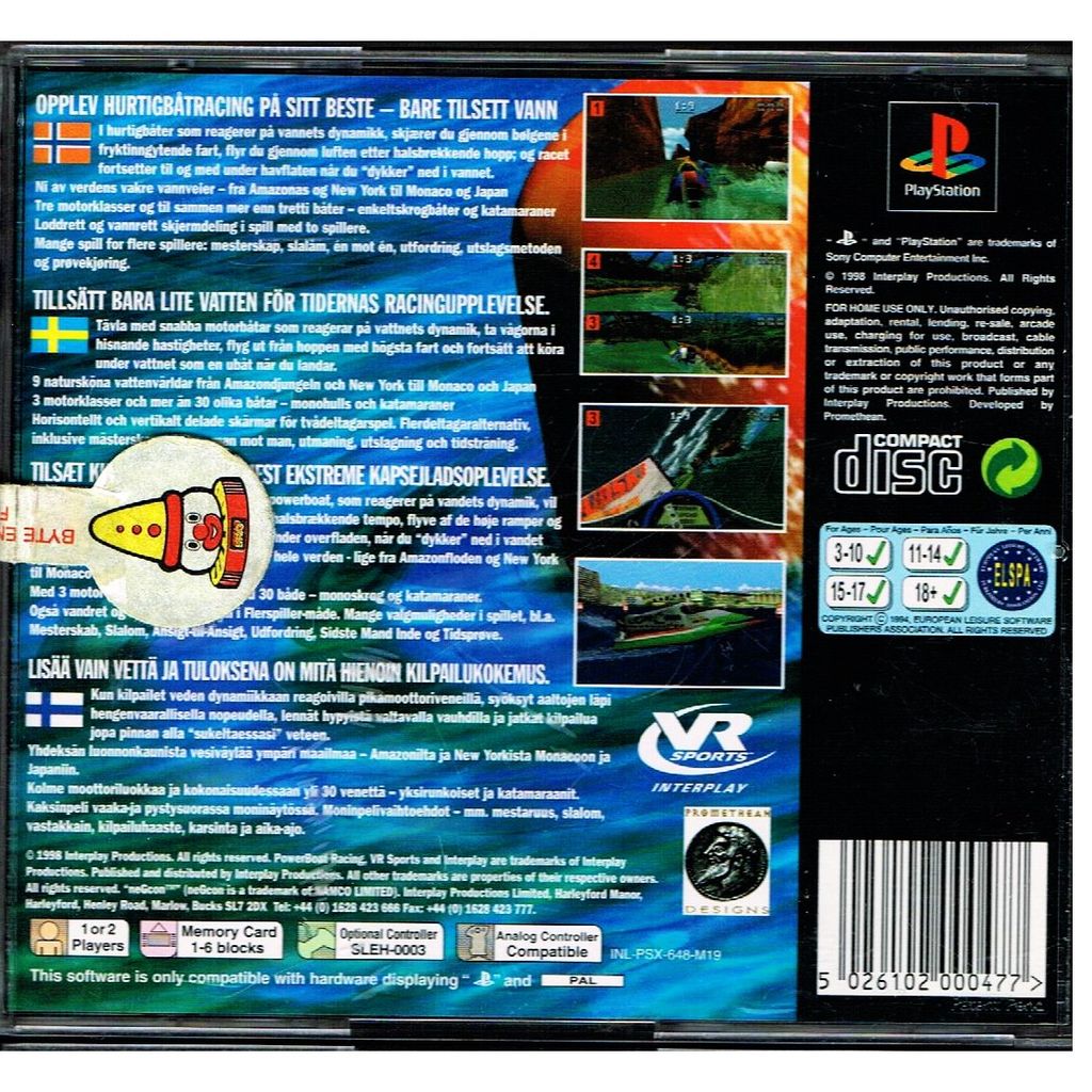 VR Sports Powerboat Racing is a racing game developed by Promethean Designs Ltd. and published by Interplay Productions in North America in 1998