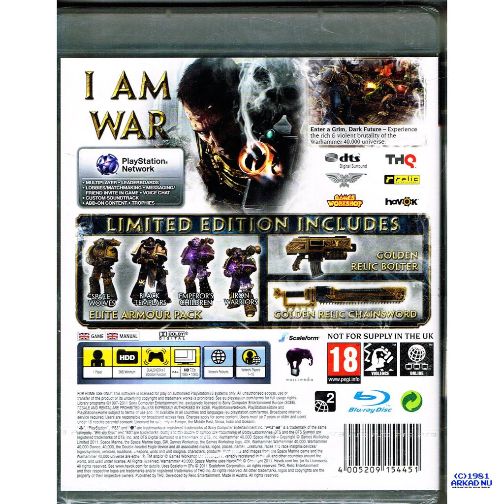 Beskrivning av WARHAMMER 40000 SPACE MARINE LIMITED EDITION PS3