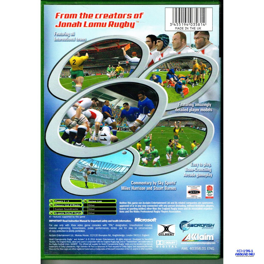 Beskrivning av WCR WORLD CHAMPIONSHIP RUGBY XBOX