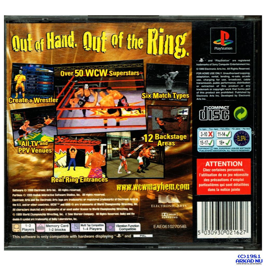 WCW Mayhem is a professional wrestling video game published by Electronic Arts, based on the American promotion World Championship Wrestling (WCW).The first WCW game produced by EA, it was released for Nintendo 64 and PlayStation in 1999 and for the Game Boy Color the following year.